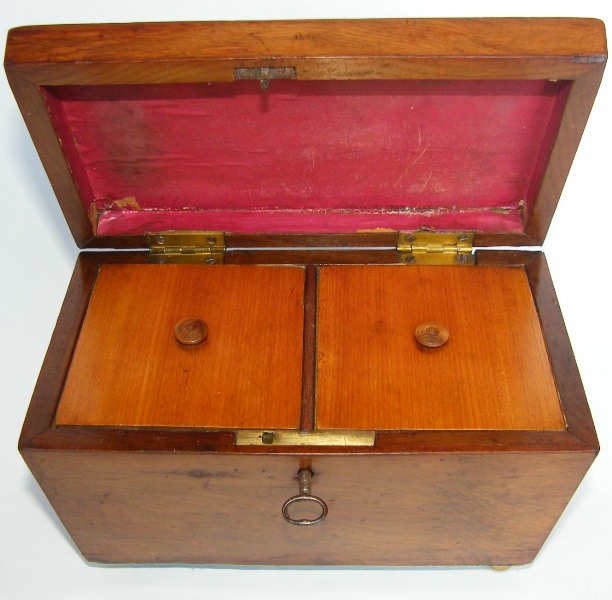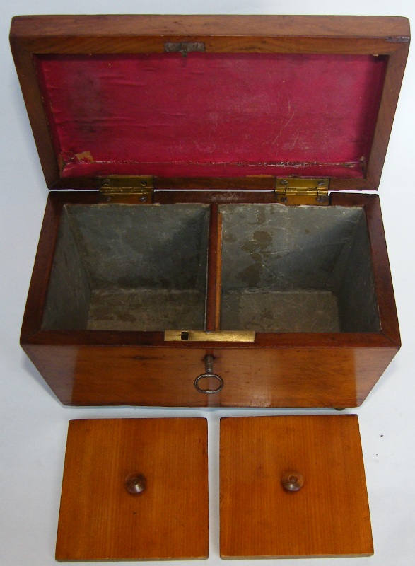 An Extremely Rare Irish Killarneyware Arbutus Double Tea Caddy of sarcophagus form with domed hinged lid, complete with original fitted interior, late Nineteenth Century.