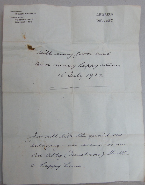 GLENA COTTAGE: Originally buil by Lady Kenmare for the use of friends and visitors to the Lakes of Killarney. It was burned down in 1922. Associated with the Browne family. Famous by virtue of the fact that Queen Victoria had lunch here during her 1861 visit to Killarney.