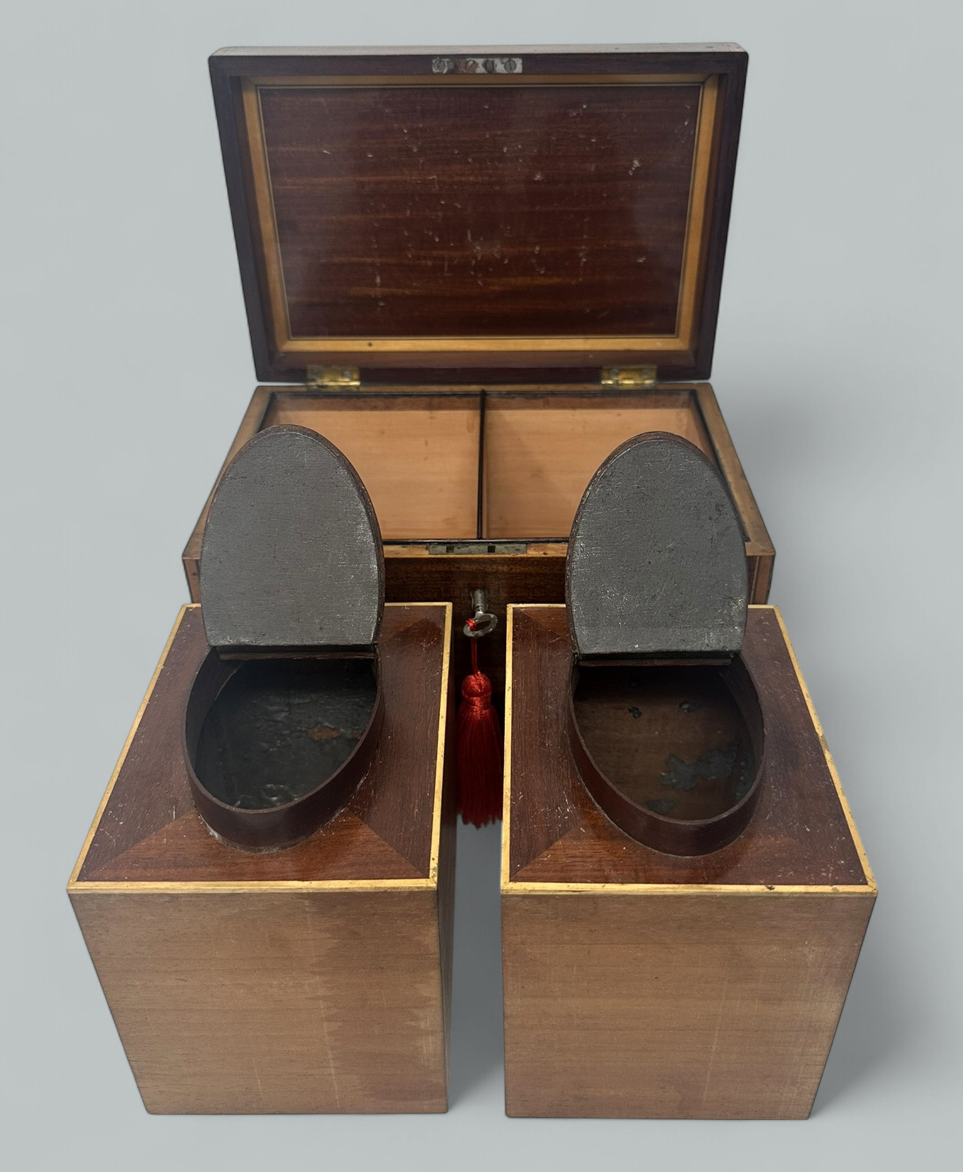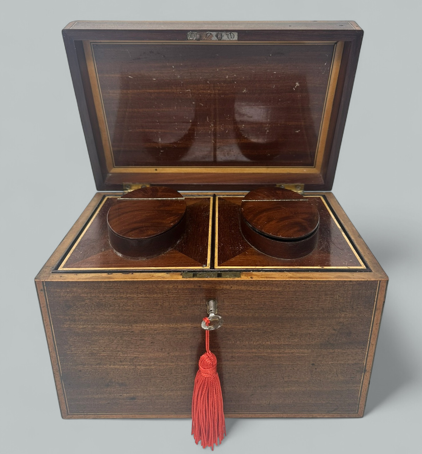 080. Antique English Mahogany Georgian Double Tea Caddy attrib Gillows 18th Century