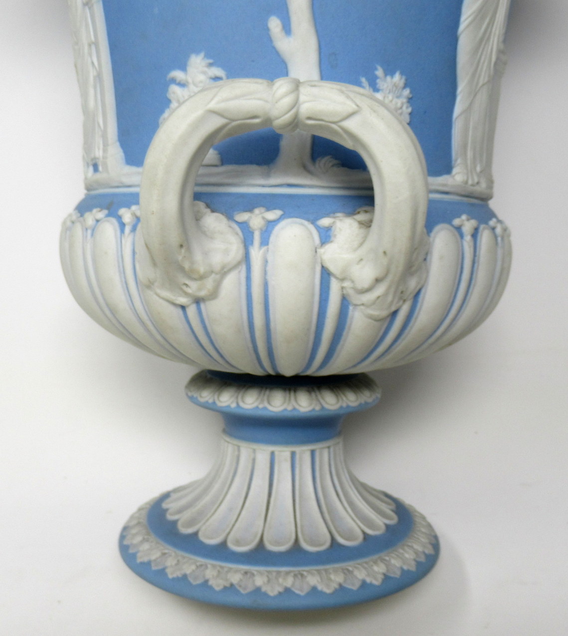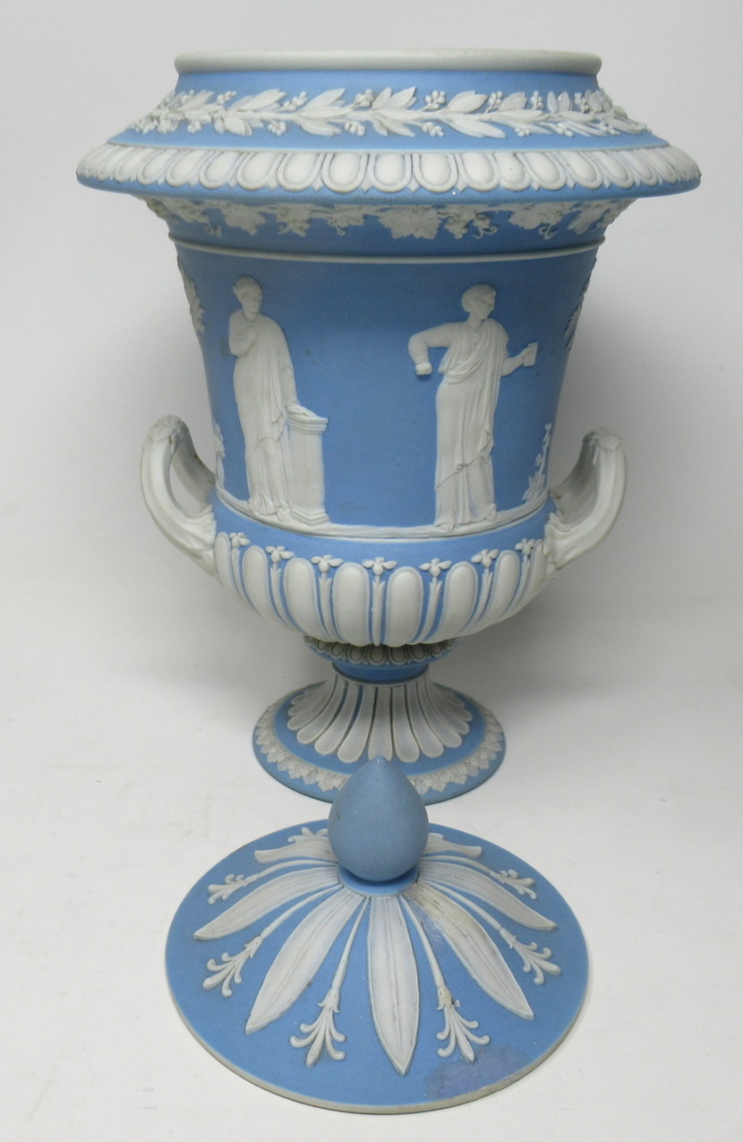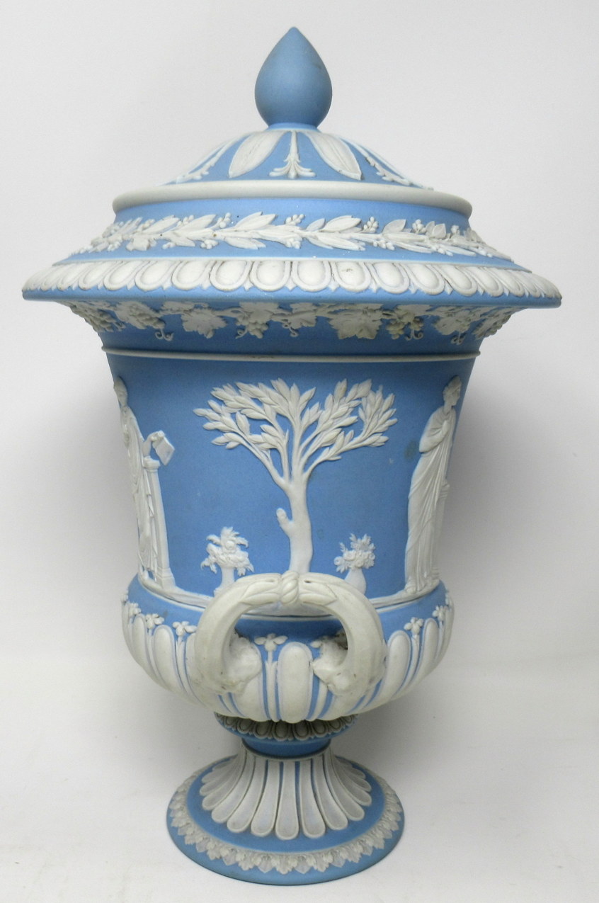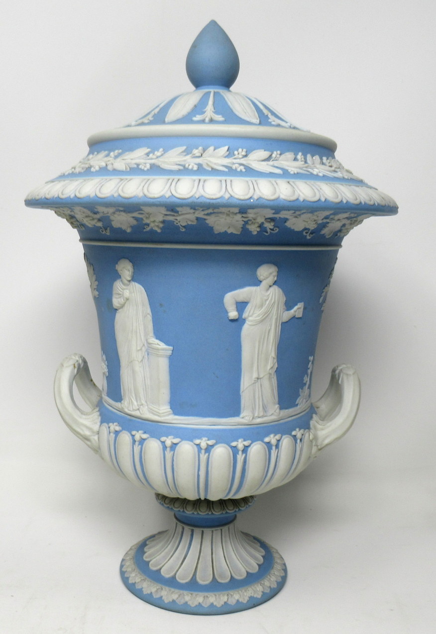 105. Exceptional English Powder Blue Wedgewood Jasperware Lidded Urn 1890-1908