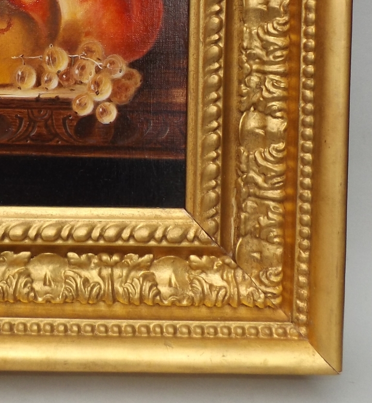 Superb Example of Still Life of Fruits Oil on canvas Painting by renowned English Artist Edward Ladell complete with an exceptional gilt period frame. Signed lower left usual initials EL.
