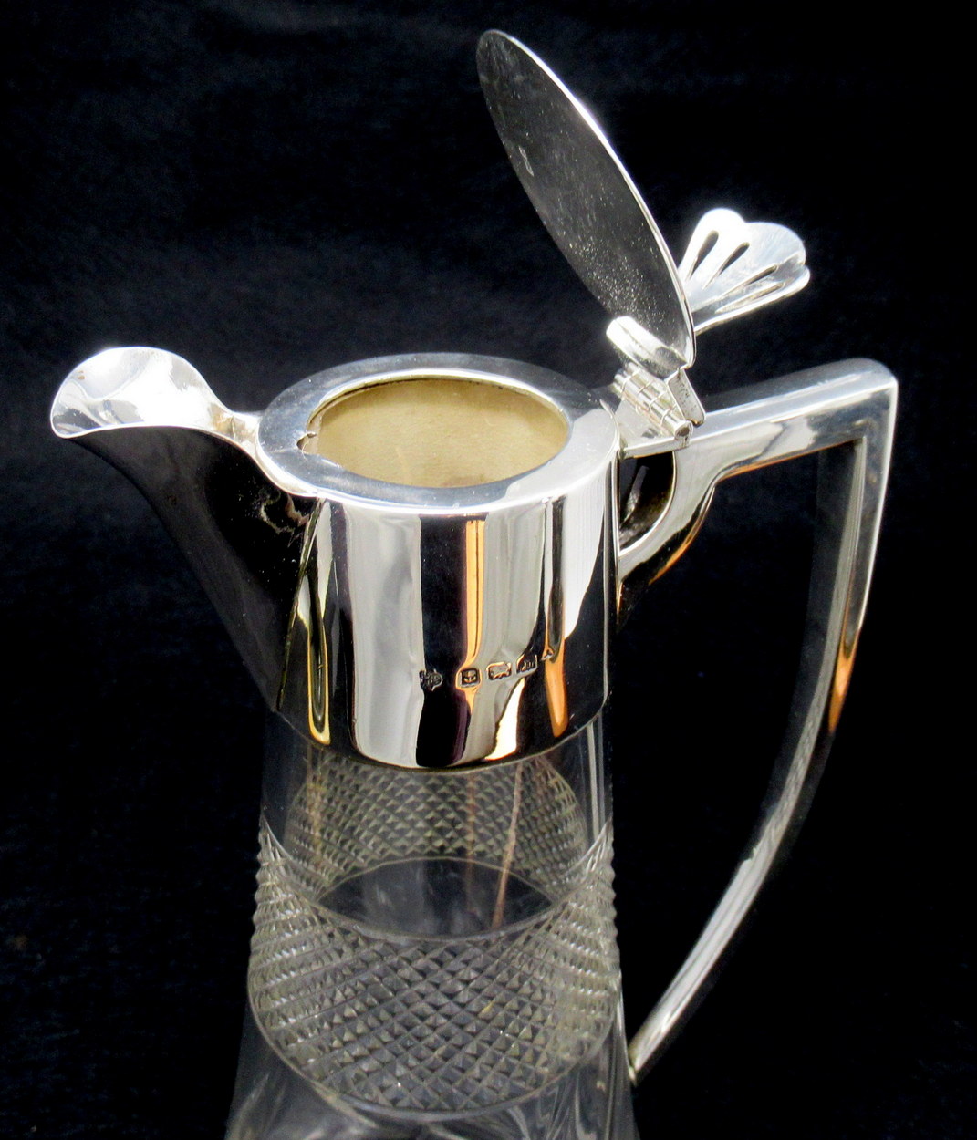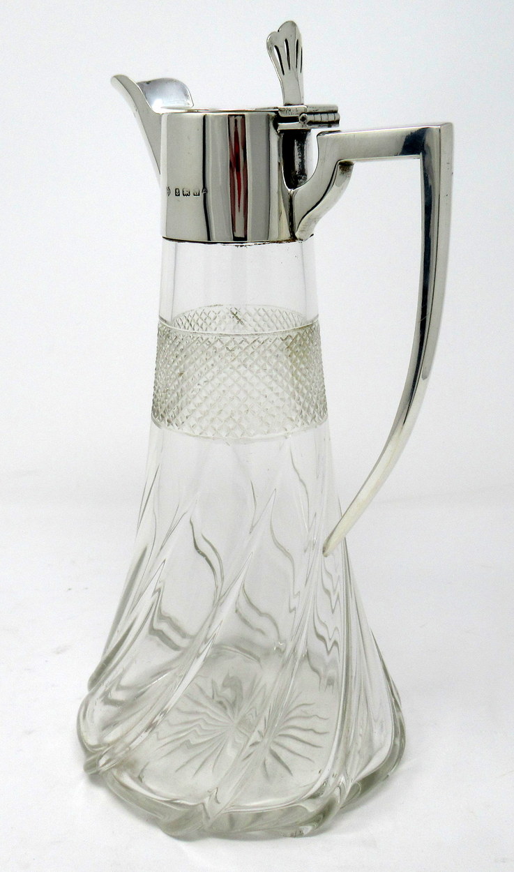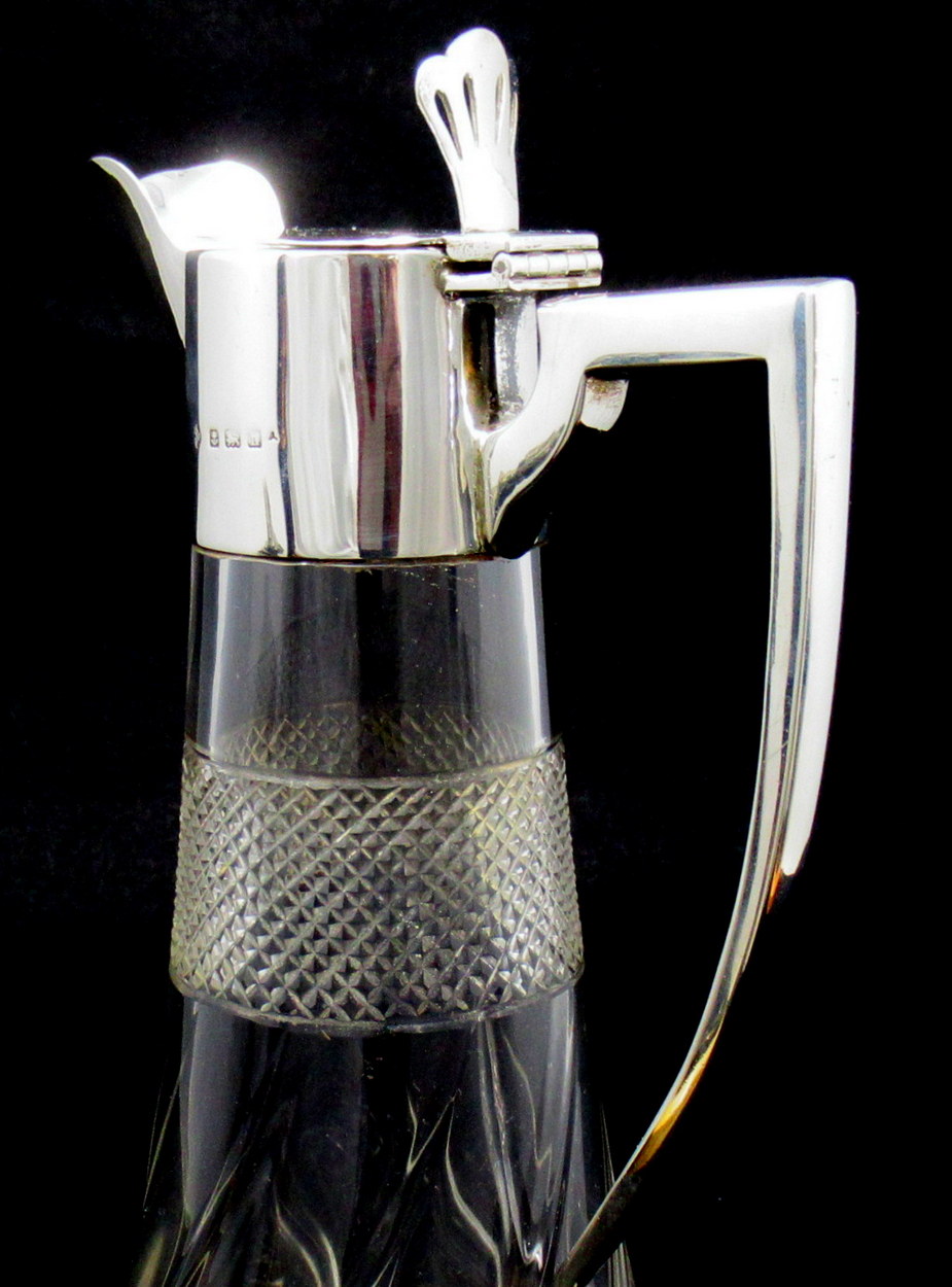 Superb English Crystal and Sterling Silver Claret Jug of outstanding quality and Design, by Renowned Silversmiths William Hutton & Sons Ltd.