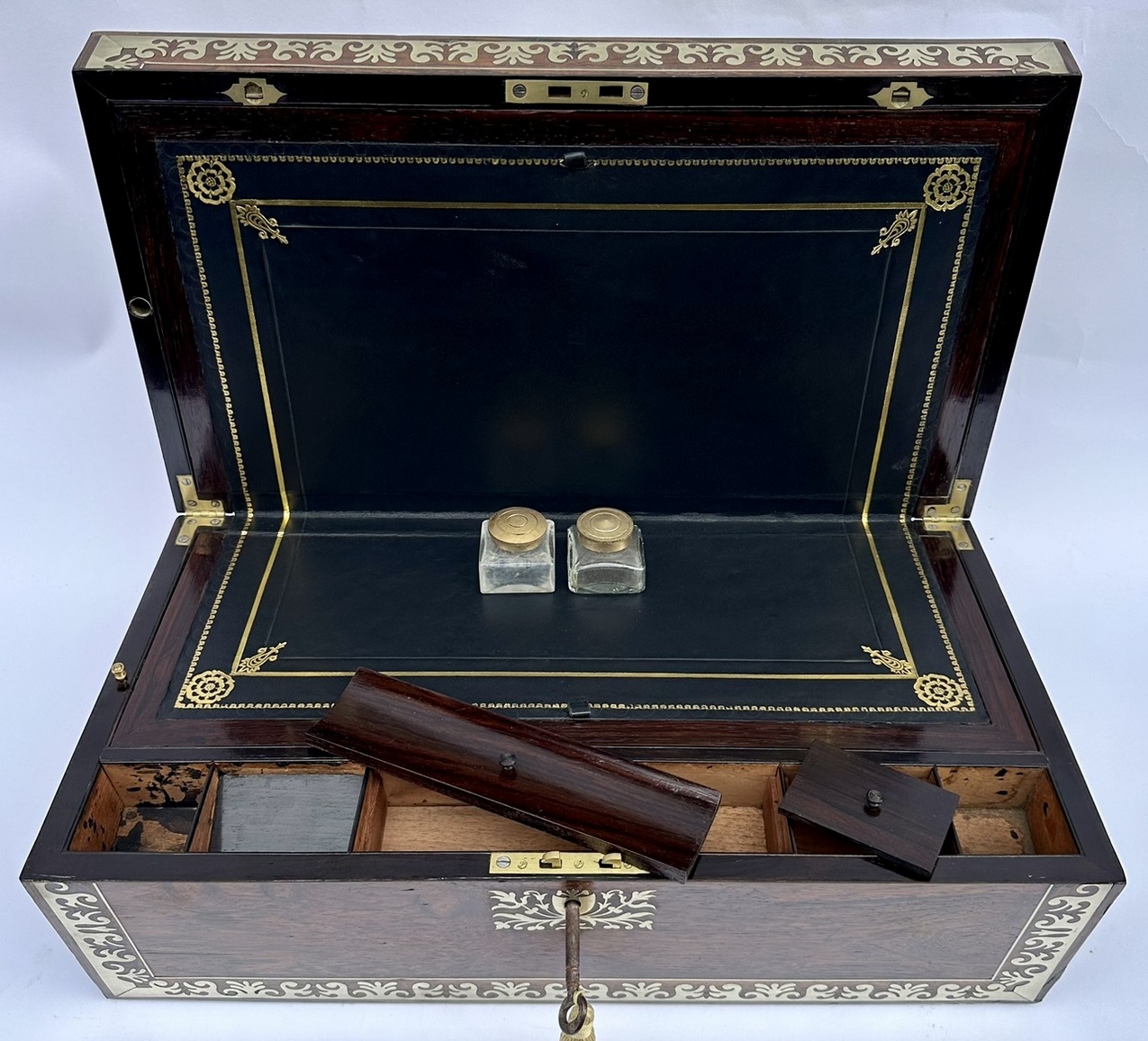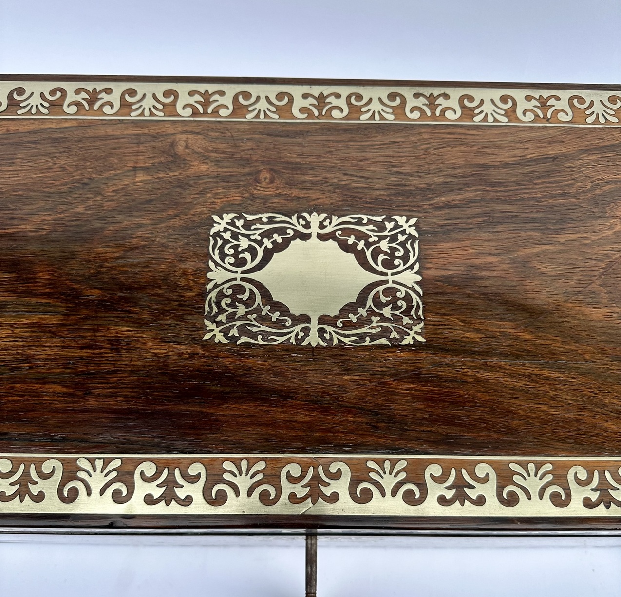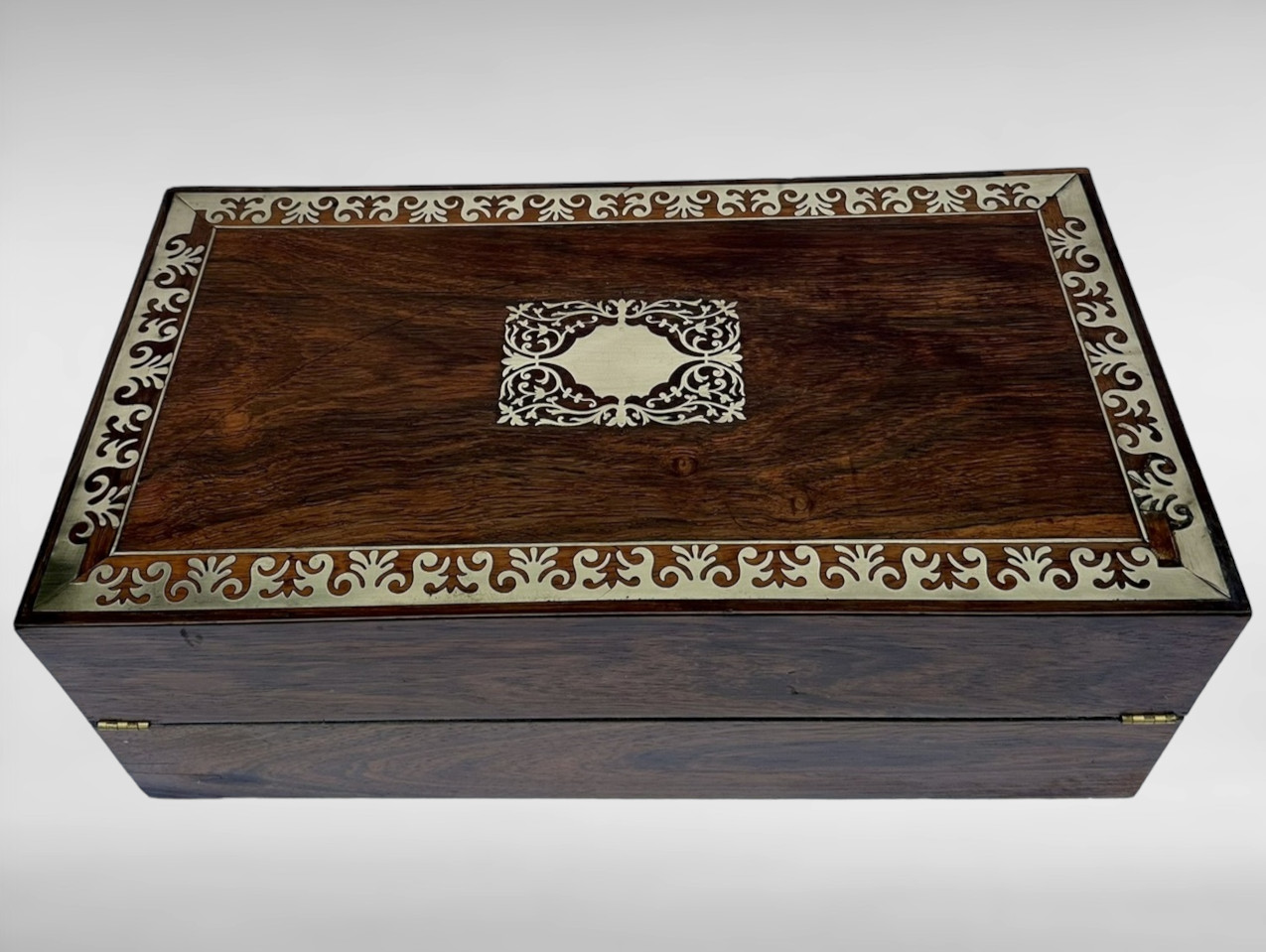 126. Antique Regency Brass Inlaid Rosewood Traveling Desk Wooden Writing Slope Box