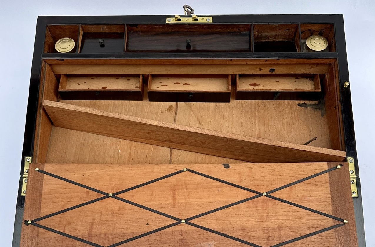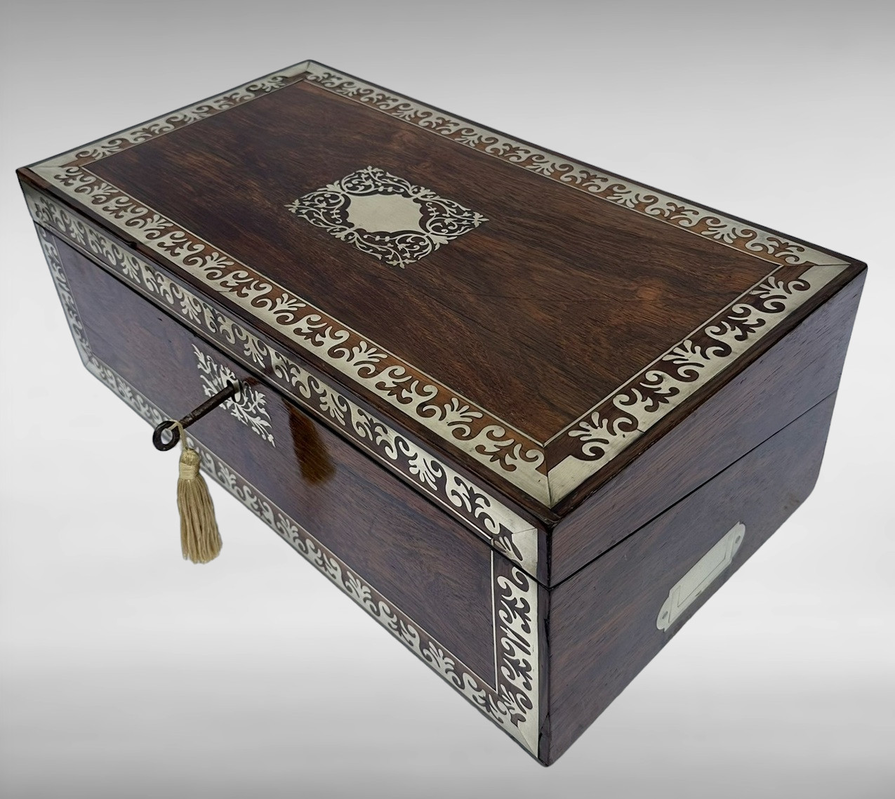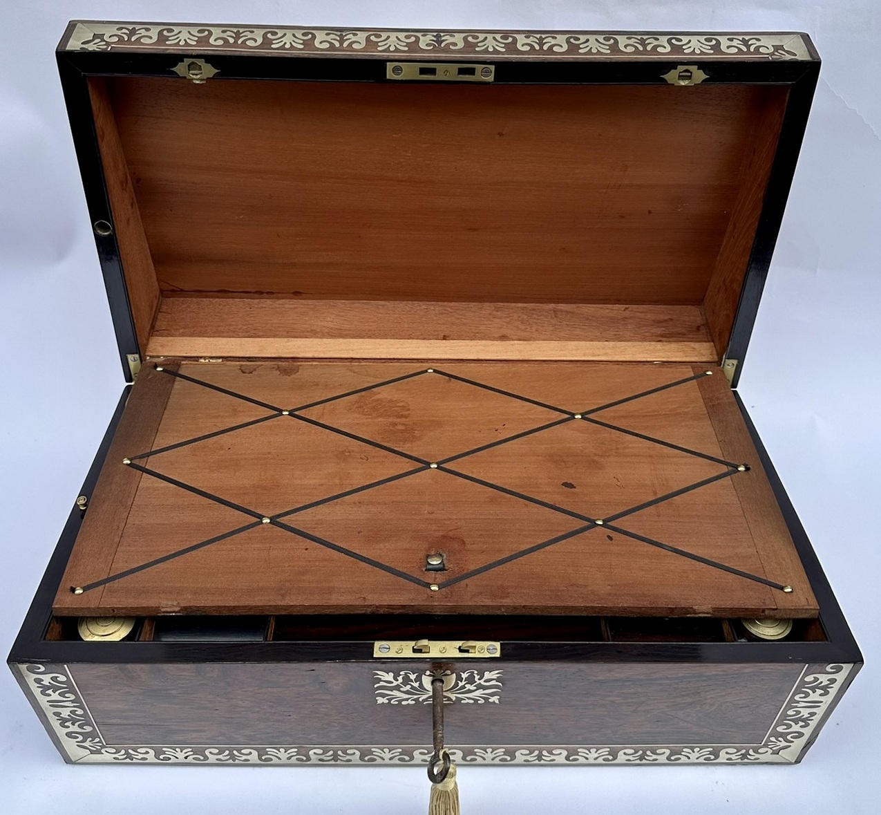 126. Antique Regency Brass Inlaid Rosewood Traveling Desk Wooden Writing Slope Box