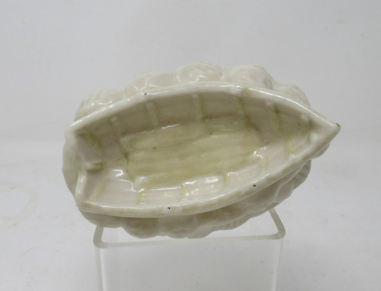 Boat shaped single table salt dish of naturalistic oval form.