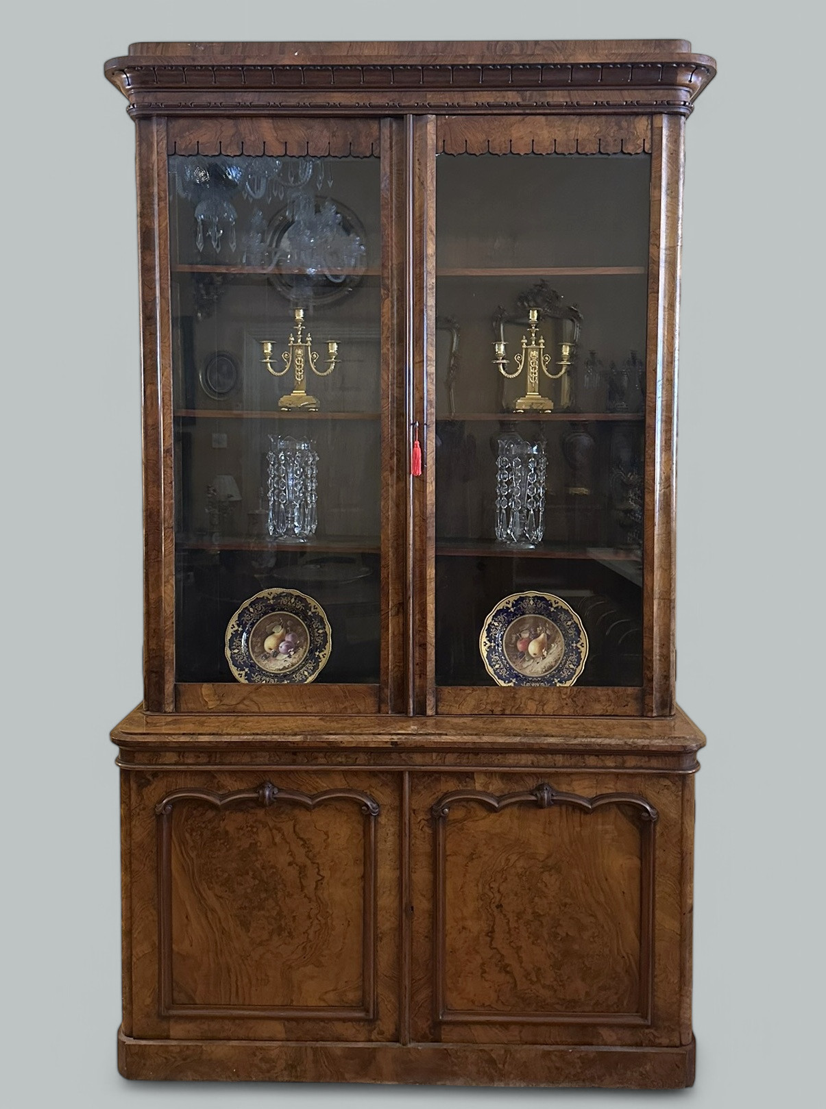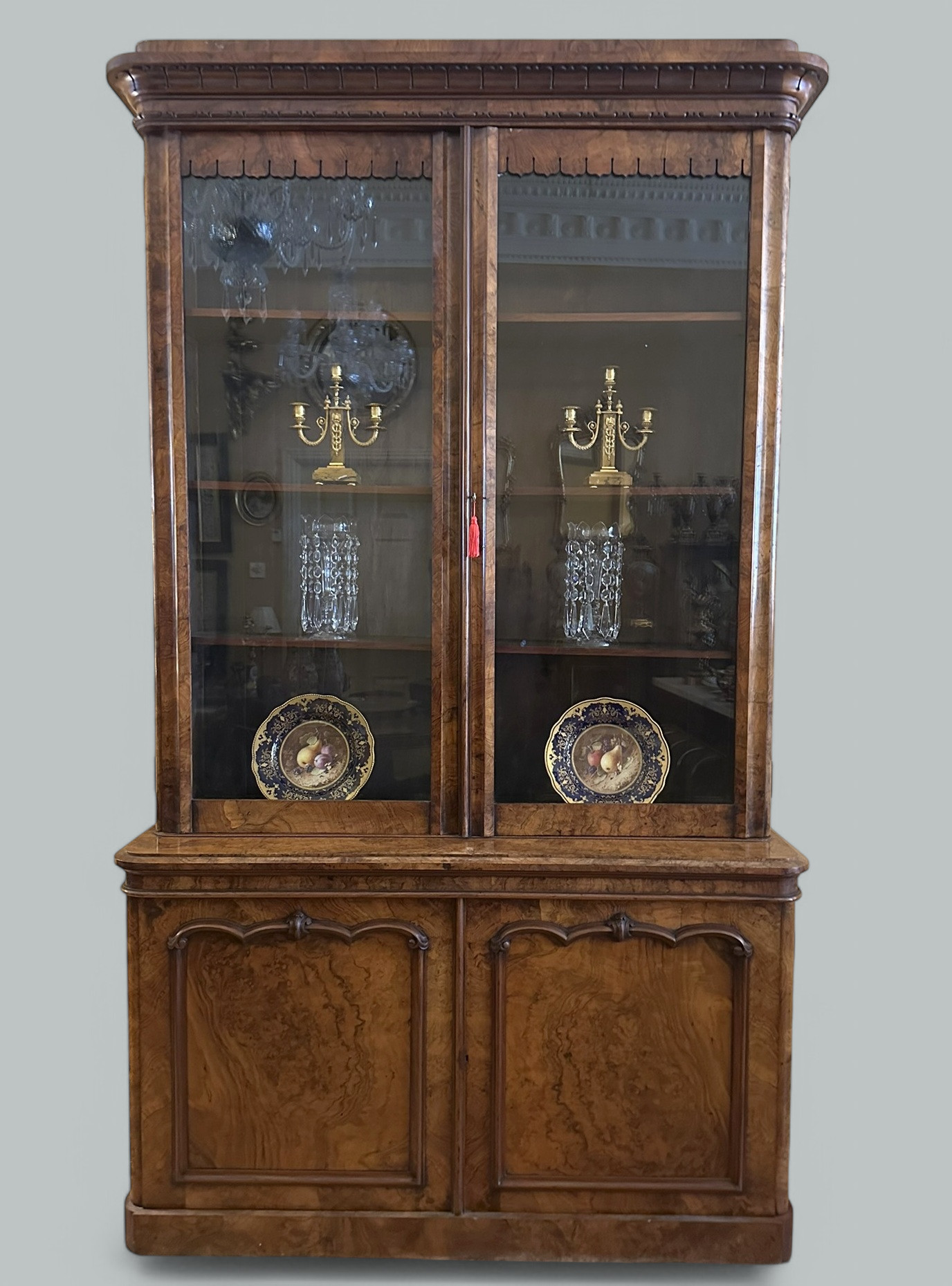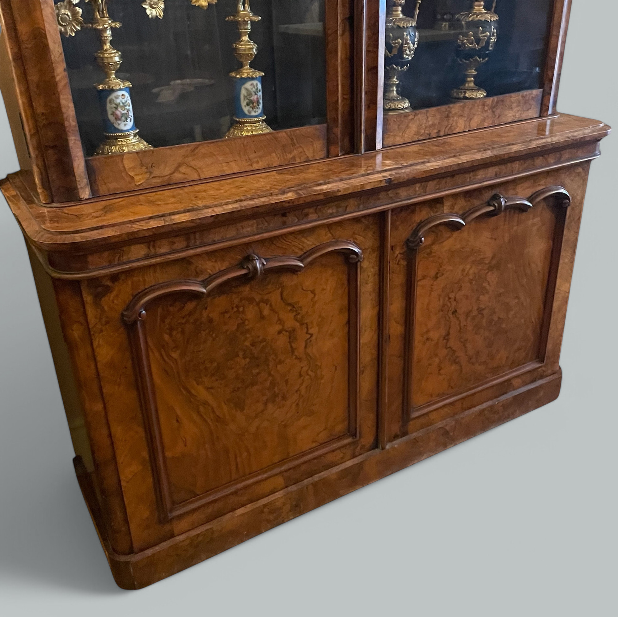 163. Antique Irish Burl Walnut Two Door Bookcase attrib Robert Strahan Dublin Ireland