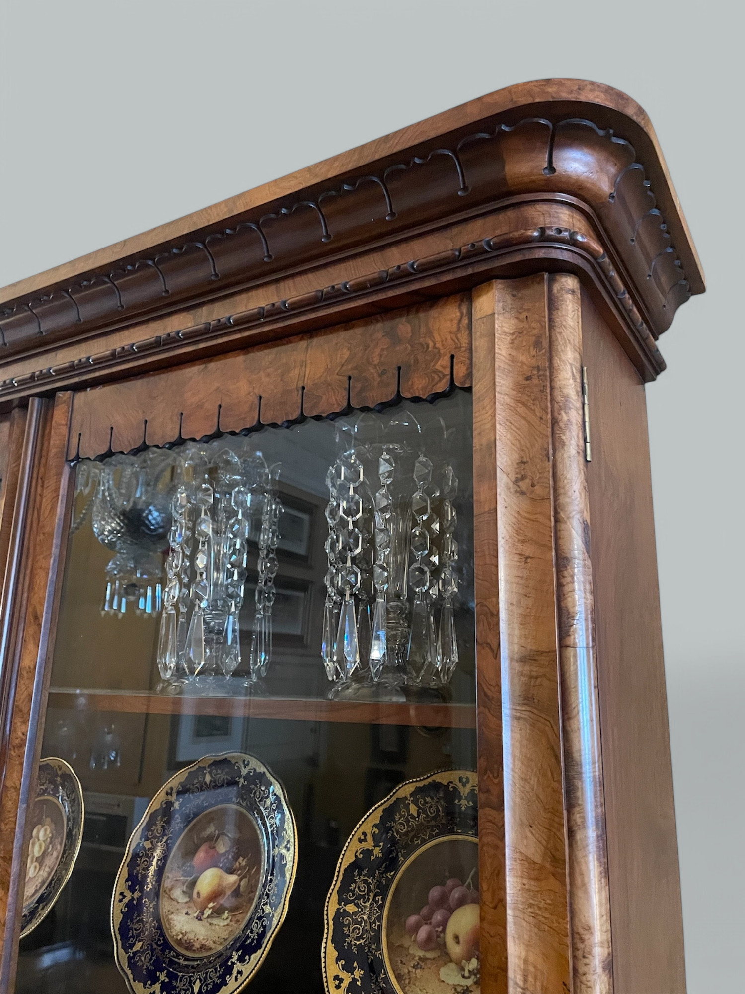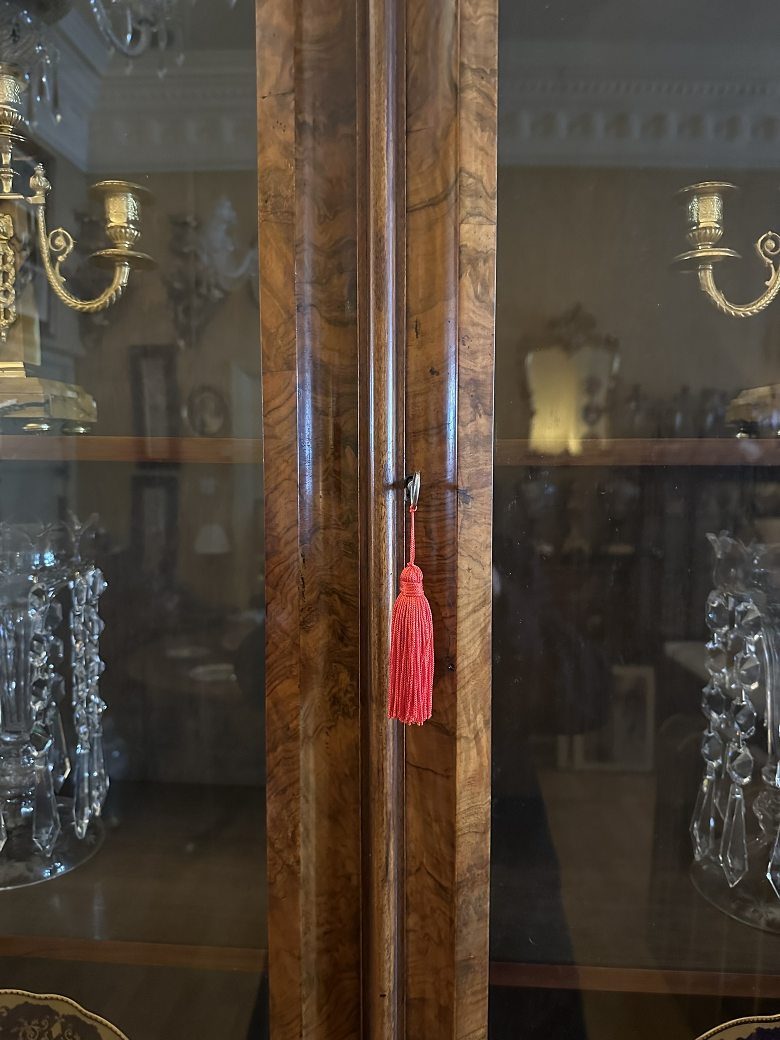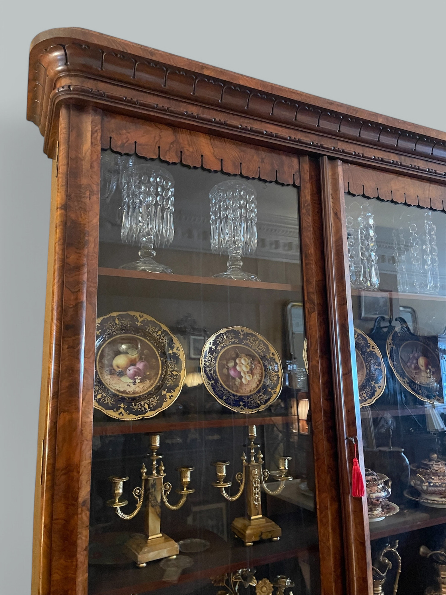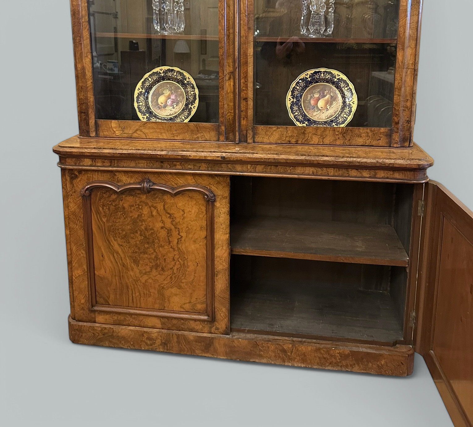 163. Antique Irish Burl Walnut Two Door Bookcase attrib Robert Strahan Dublin Ireland