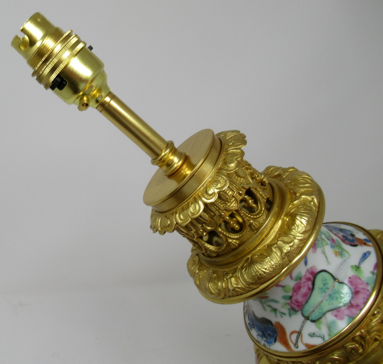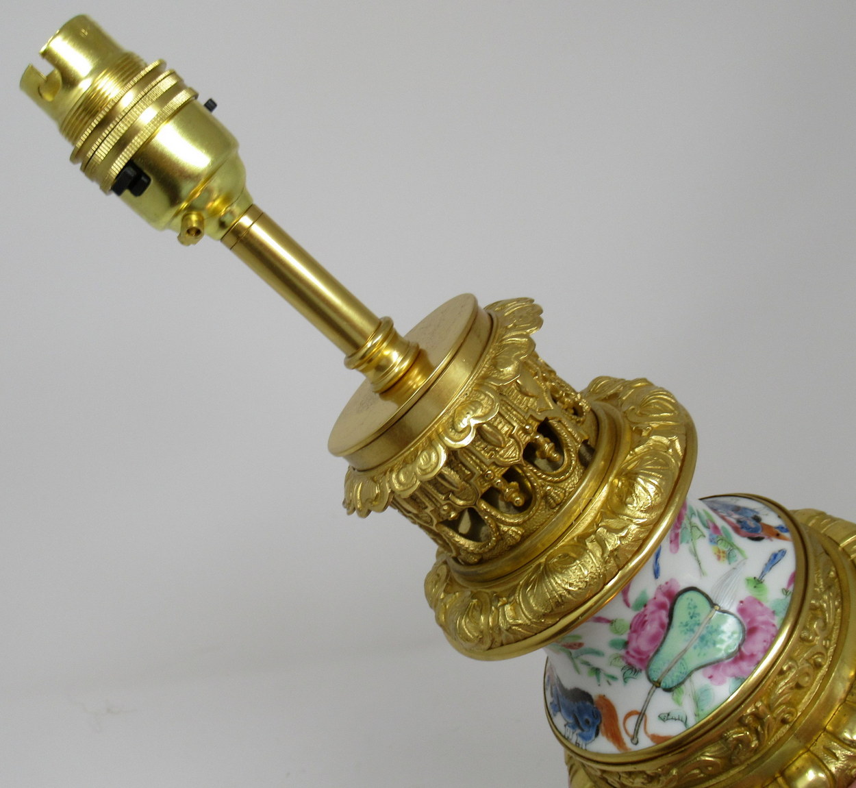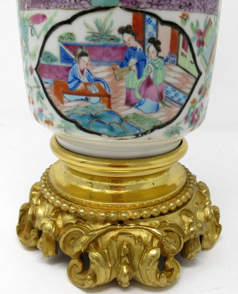 171. Cantonese Famille Rose Hand Painted Table Lamp Ormolu Mounted 19thCt