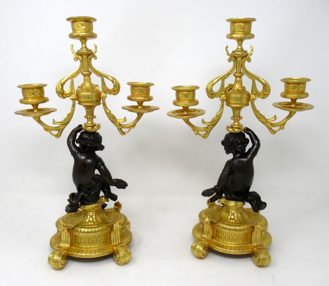 Condition: Superb condition complete with original firm fitting drip pans. Professionally re-gold plated and bronze patinated.