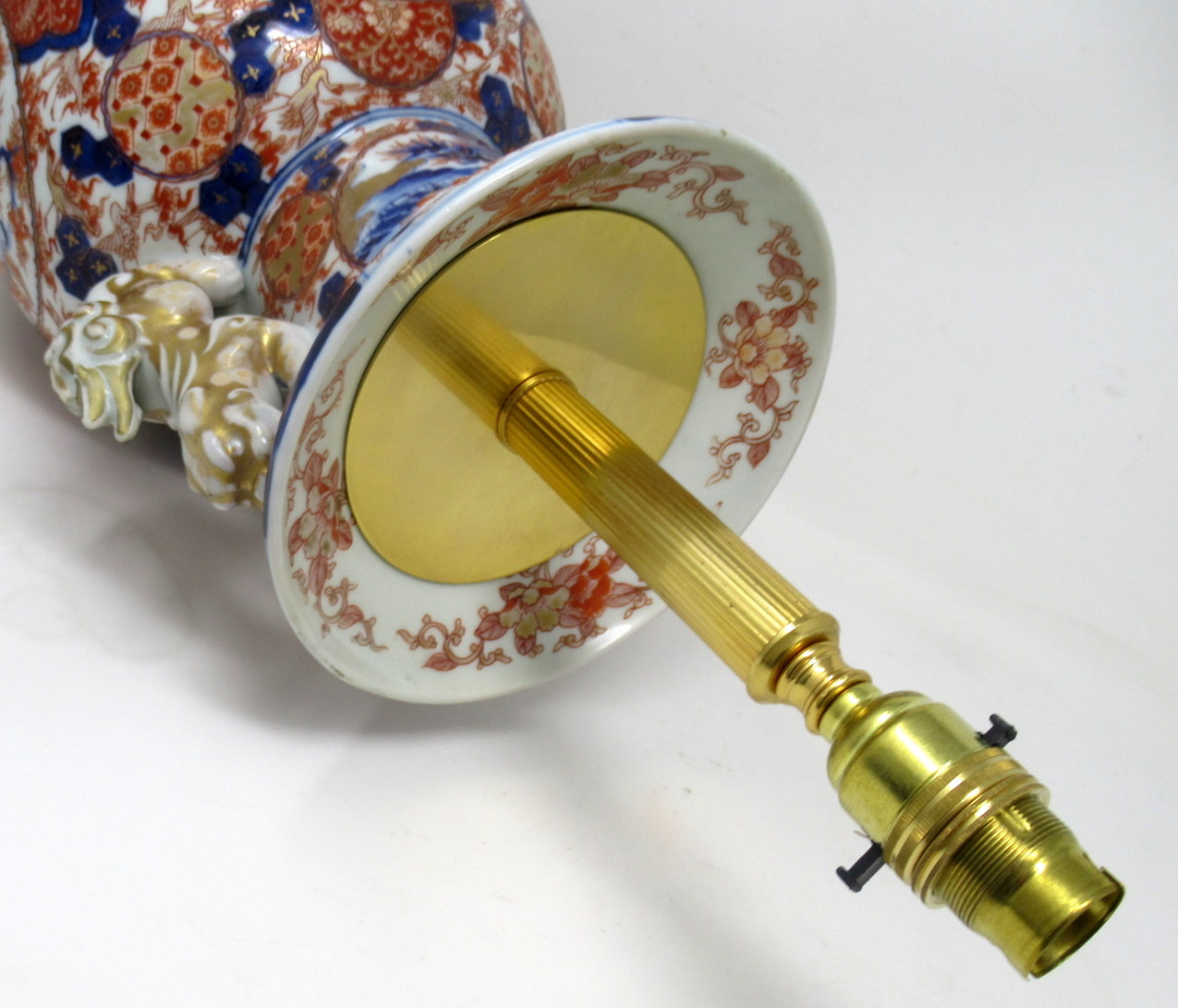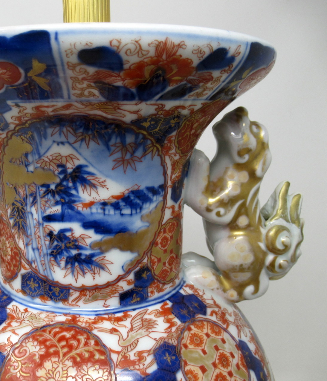 222. Antique Japanese Chinese Imari Porcelain Ormolu Table Vase Lamp Blue Red Gilt