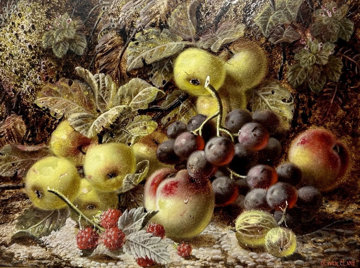 Oliver Clare comes from a prolific Birmingham family of artists. He was the son of George Clare and the brother of Vincent. His paintings depict mostly still lifes of fruit and garden flowers, often on mossy banks.