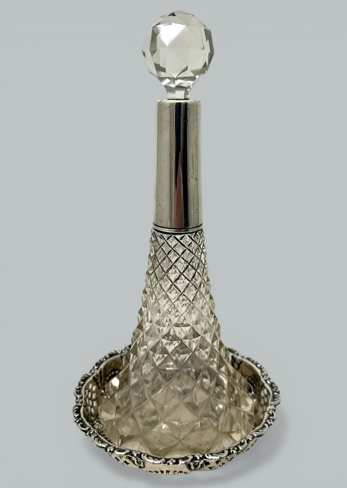 303. Collection English Crystal Sterling Silver Cranberry Toilet Scent Perfum Bottles