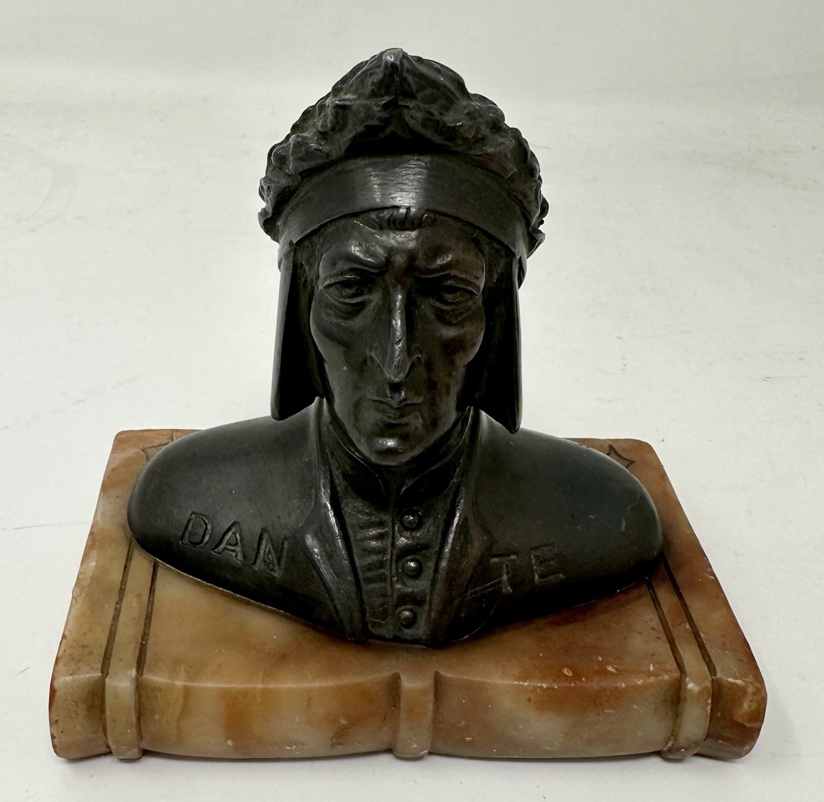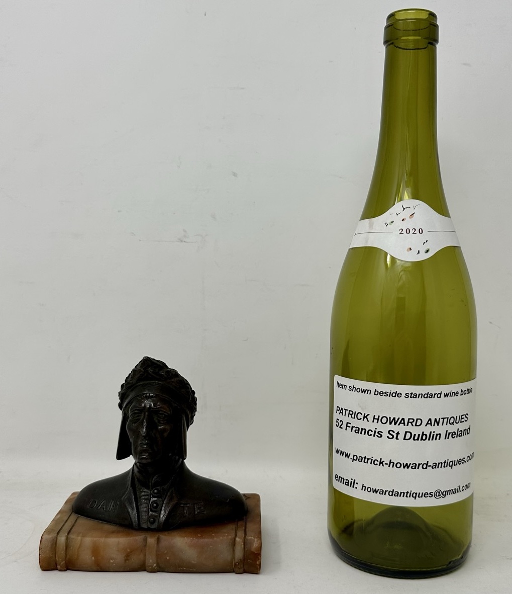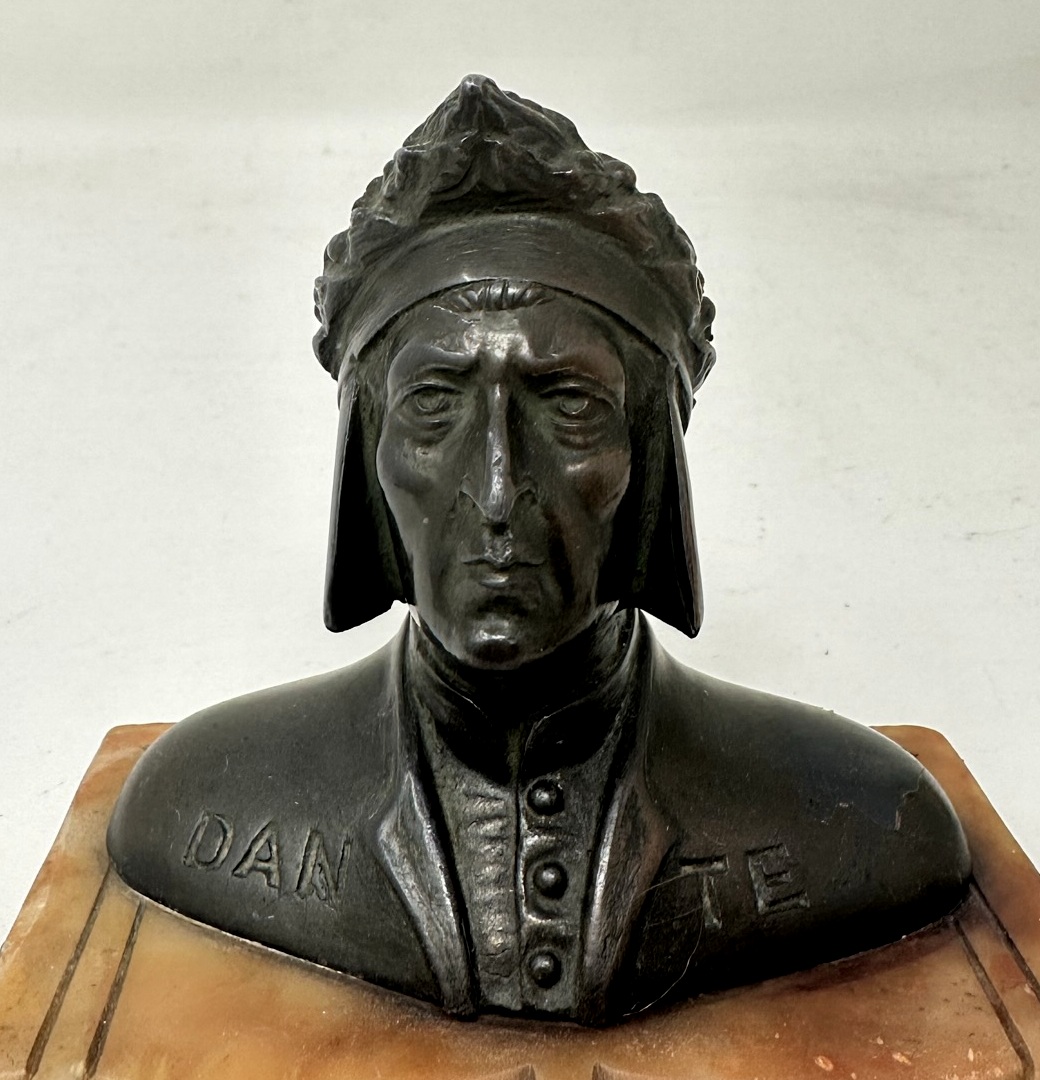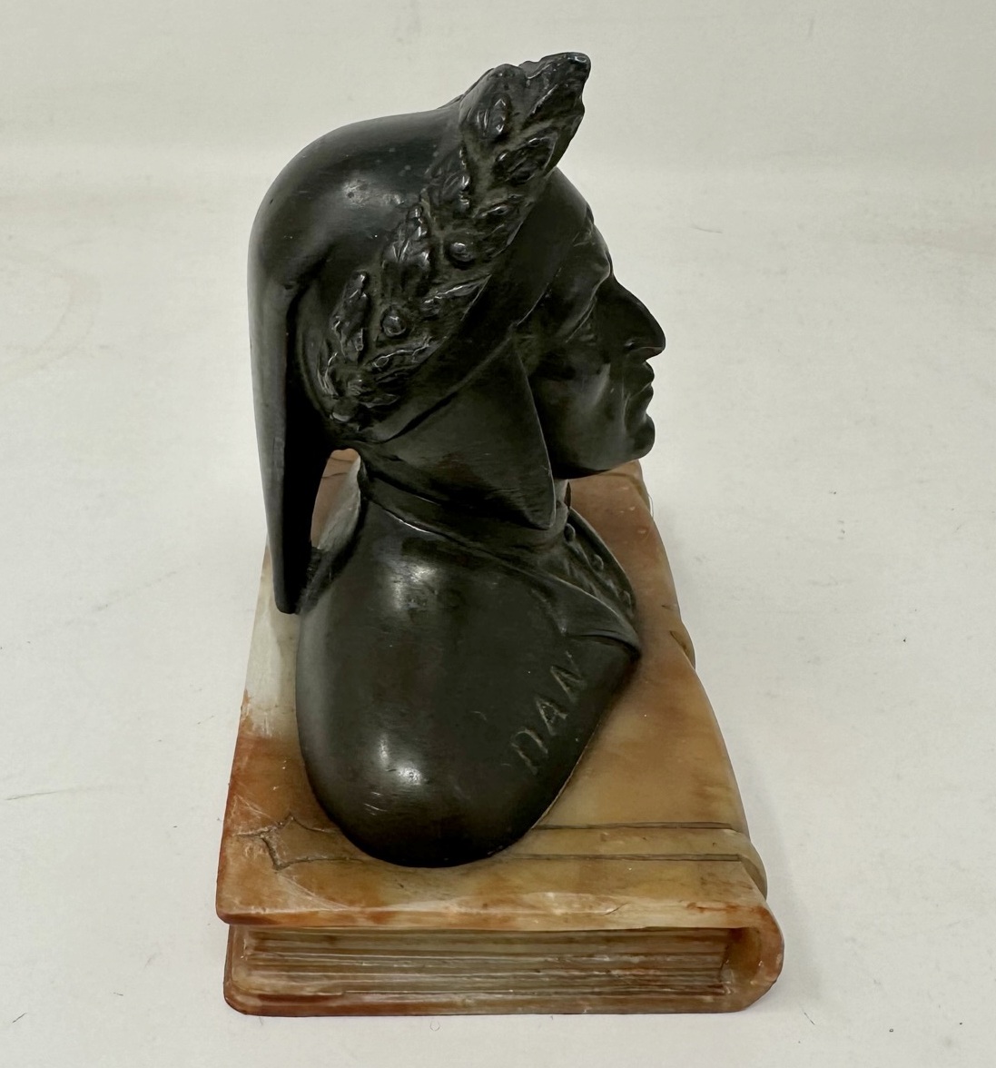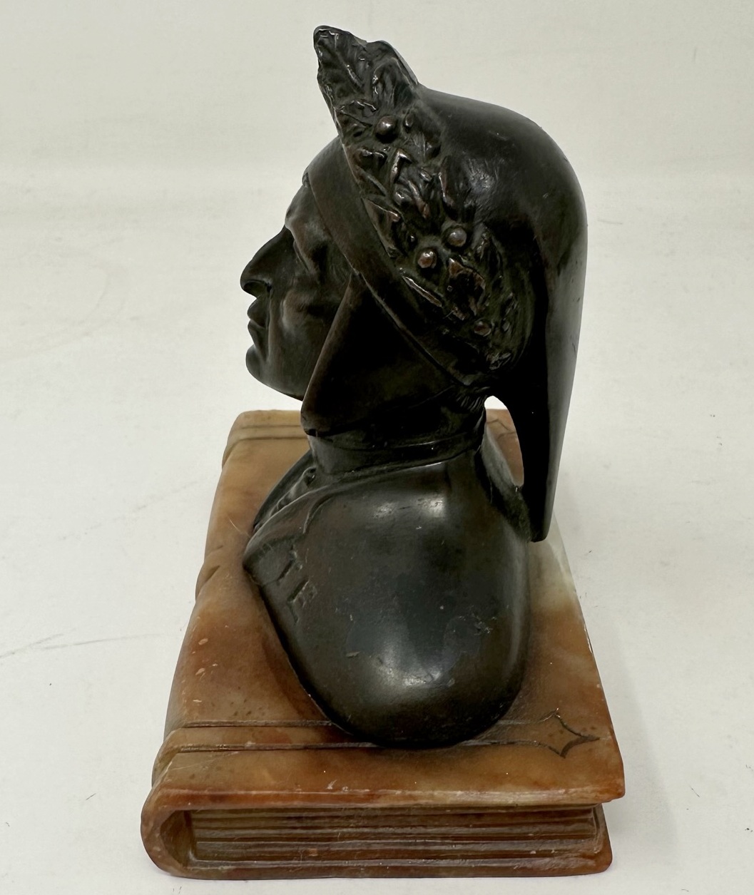 322. Antique Grand Tour Bronze Sculpture Bust of Dante Alighieri Alabaster Base 19Ct