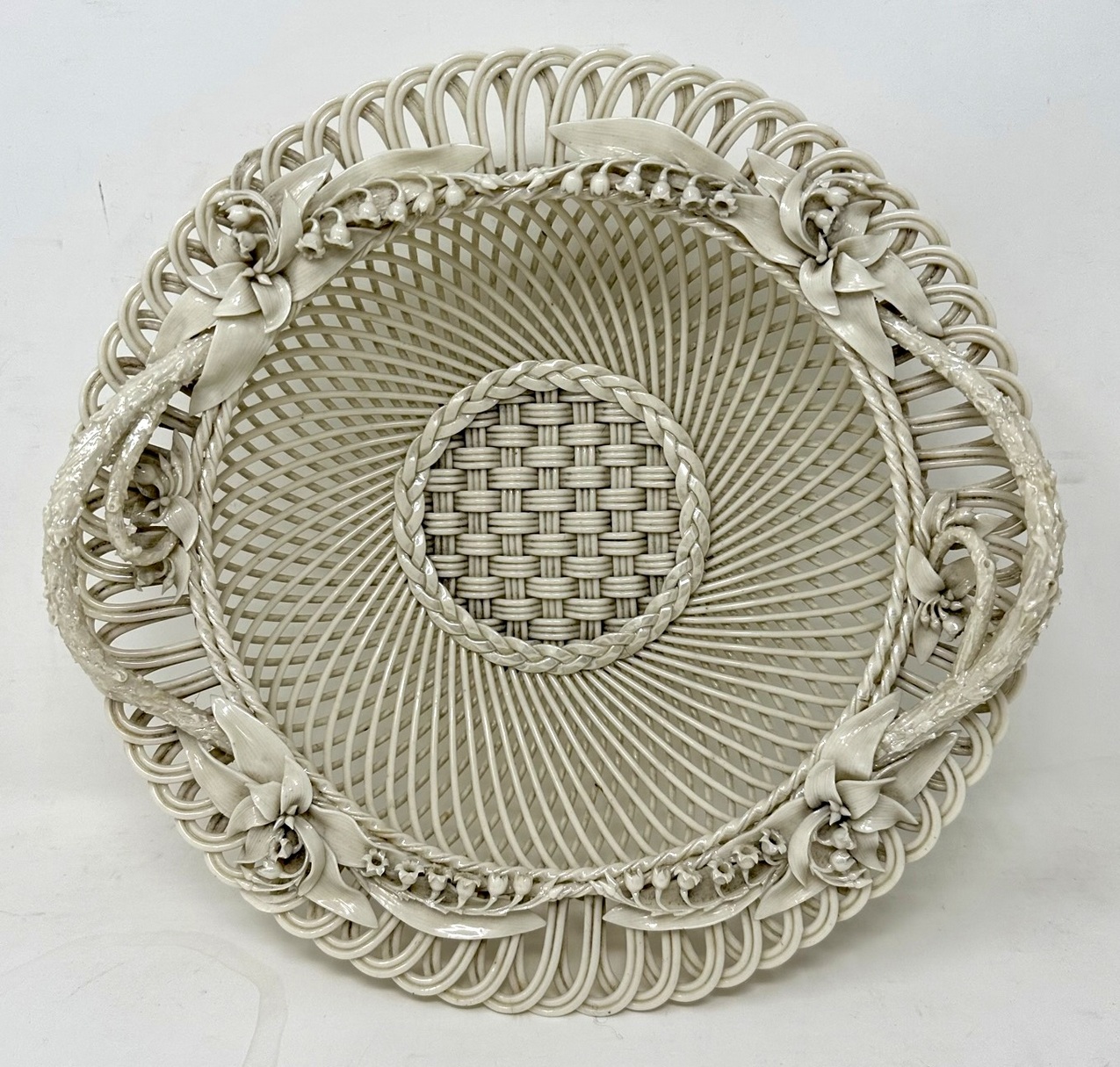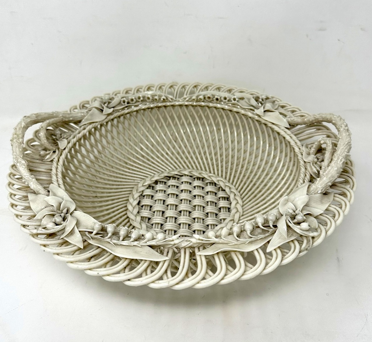 336. Antique Irish Belleek Porcelain Three Strand Basket Centerpiece 1865-1889 Ireland