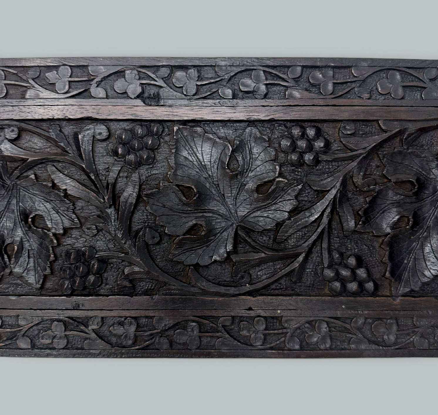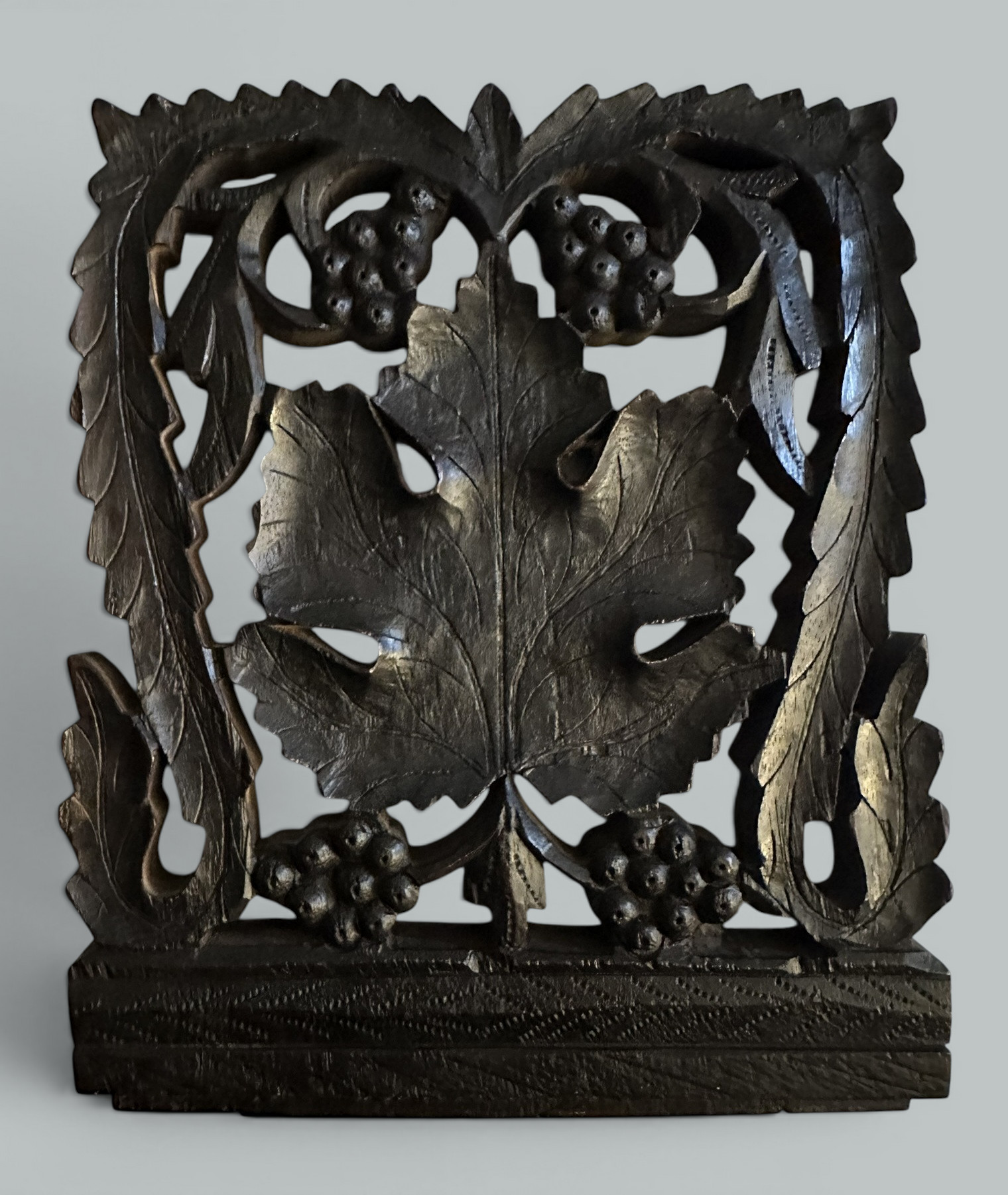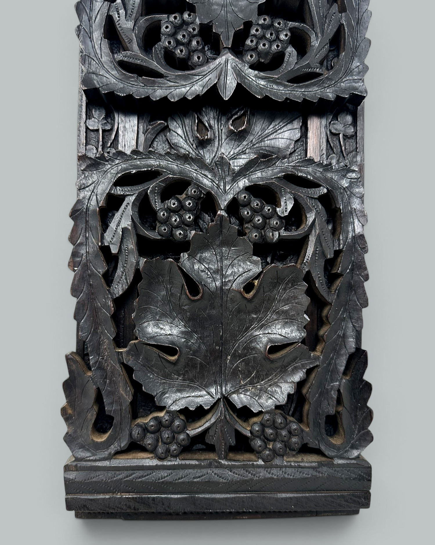 340. Antique Vintage Black Forest German Book Slide Carved Irish Shamrocks Maple Leaf