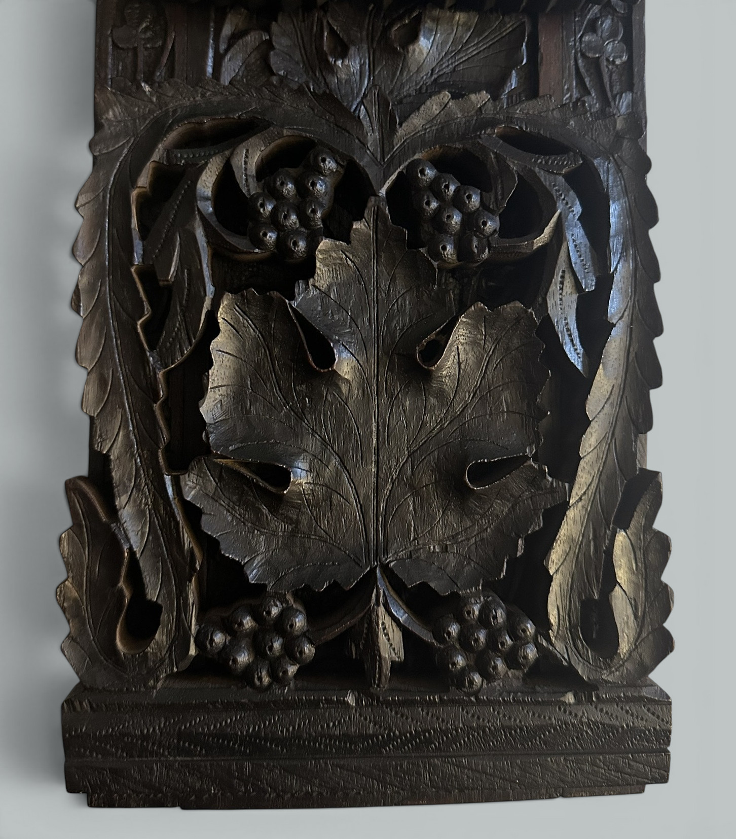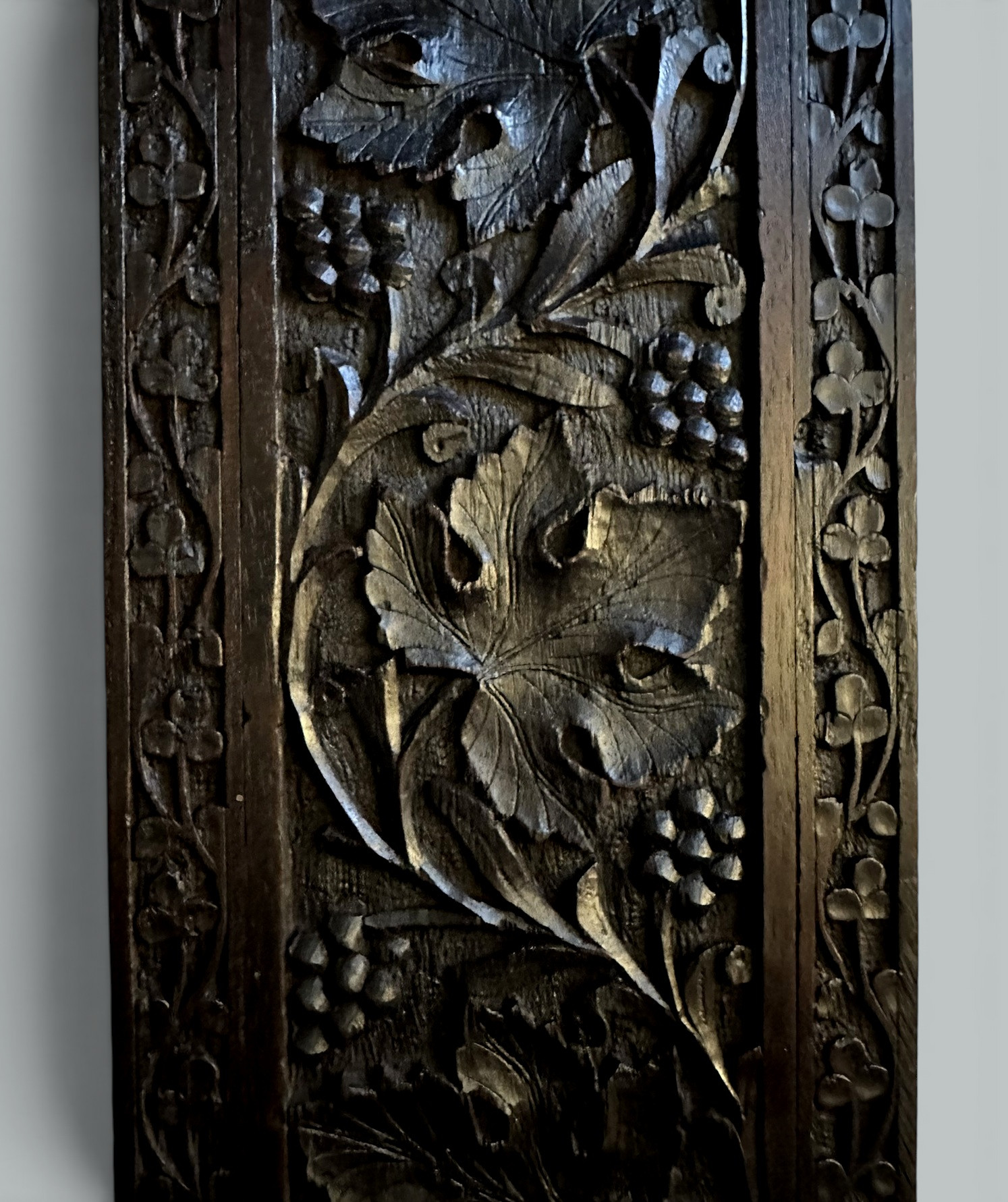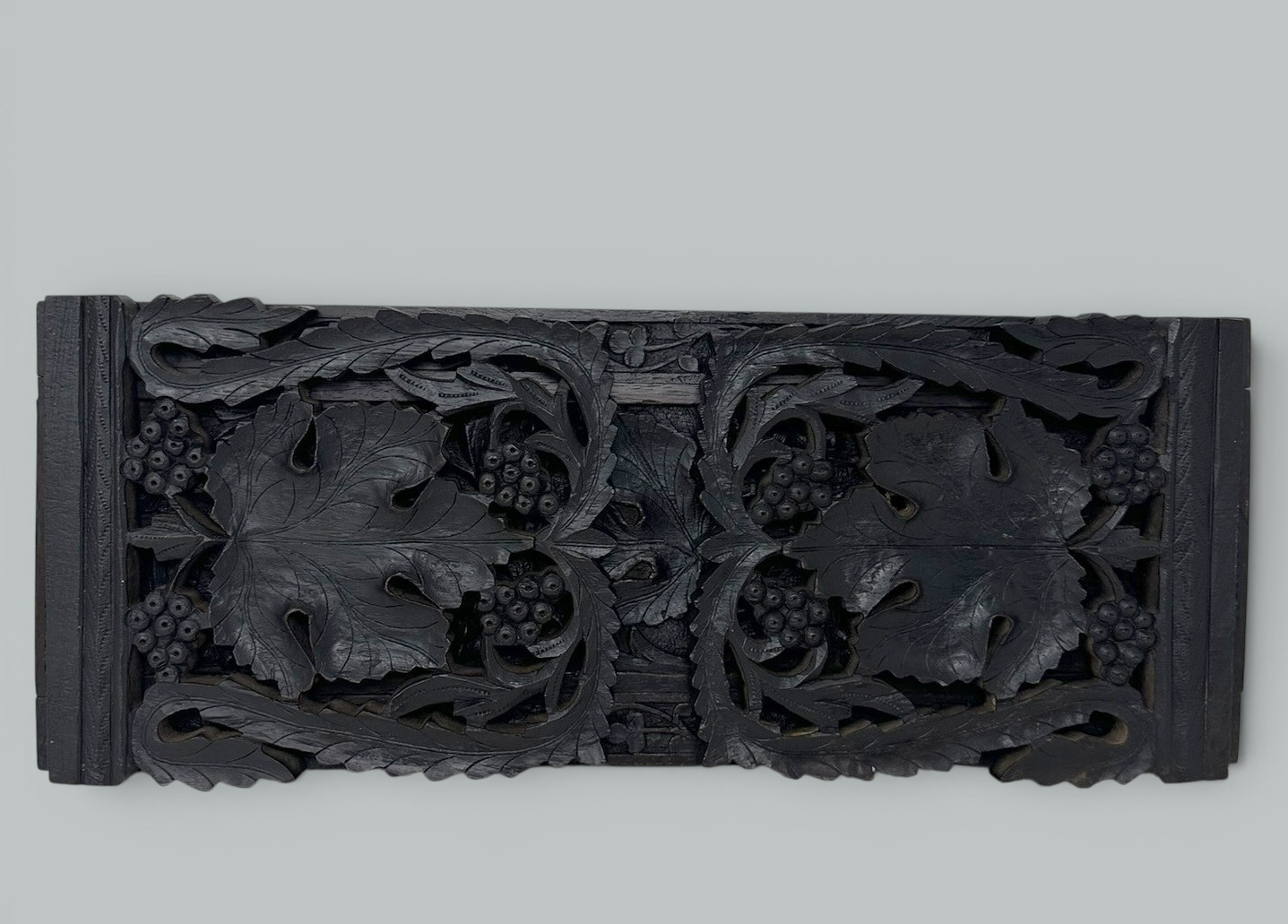 340. Antique Vintage Black Forest German Book Slide Carved Irish Shamrocks Maple Leaf