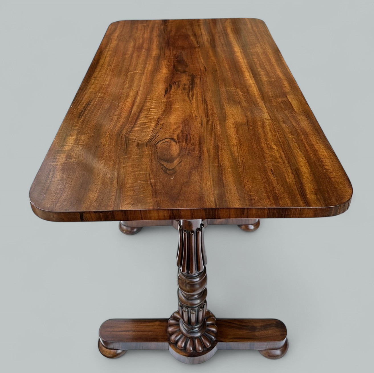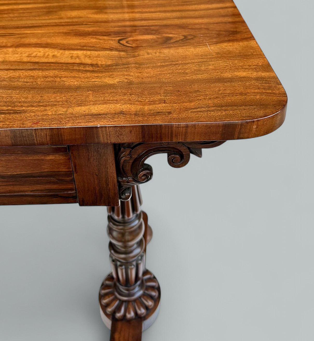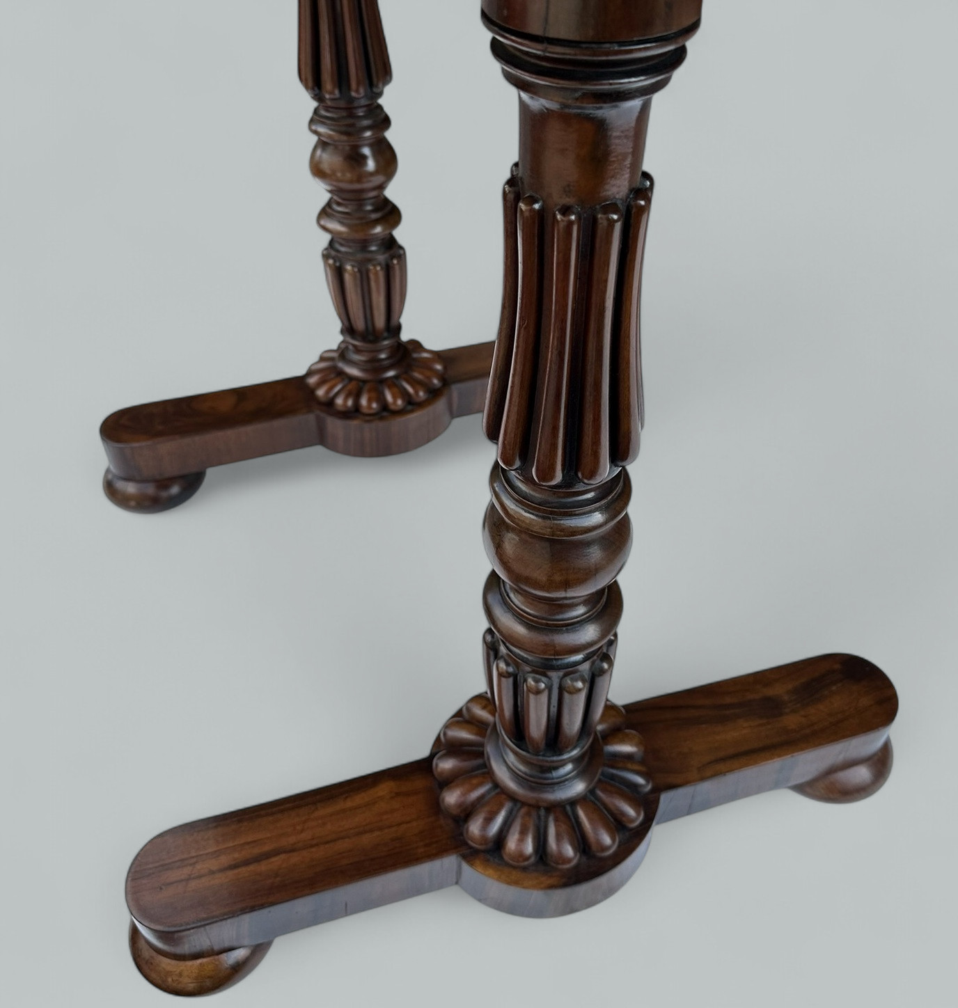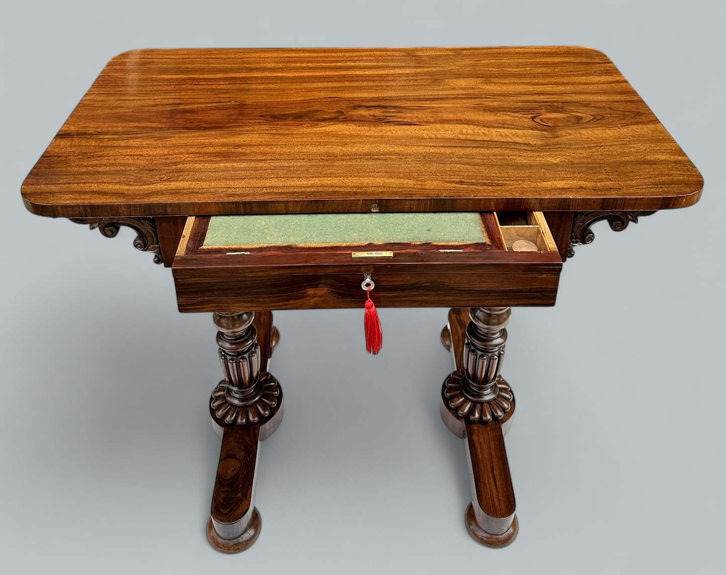 A Very Imposing example of an English well figured Rosewood Regency Period rectangular Lady’s single drawer Desk or occasional side table of compact proportions, in the manner of renowned Cabinet Makers Gillows of Lancaster and London. Circa 1815-20.