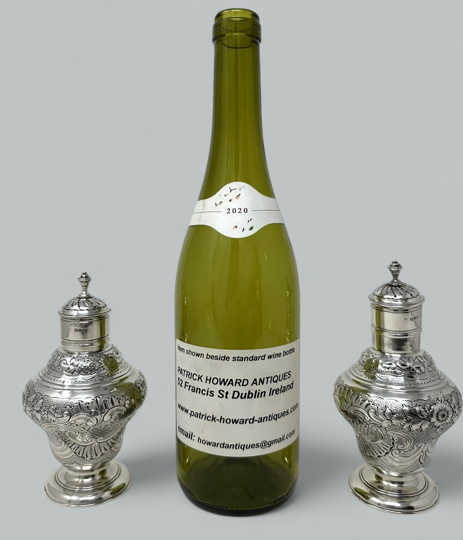 344. Antique Pair Georgian Style Sterling Silver Tea Caddies Caddy Harris and Sons 1909