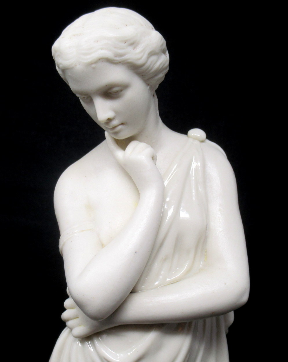 355. Irish Belleek Meditation Glazed Parian Figure First Period Black Mark 1863-1891