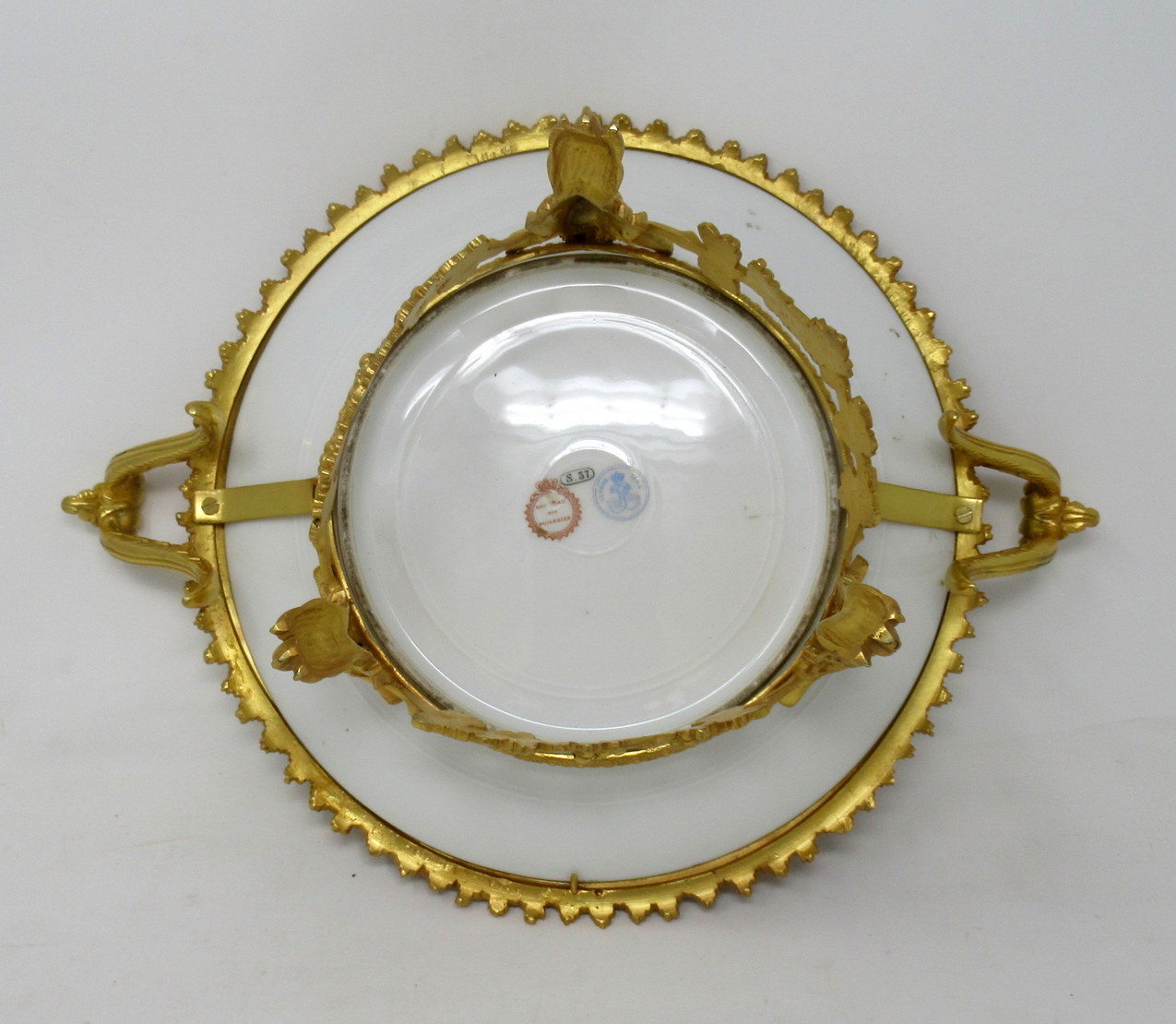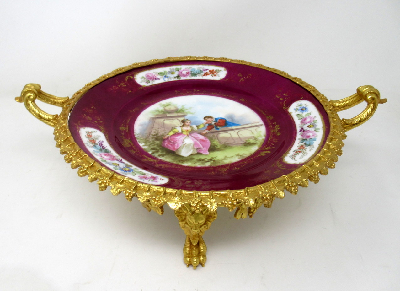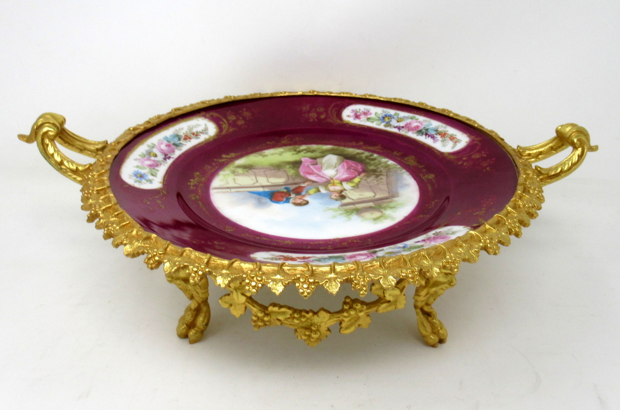 379. Antique French Sevres Ormolu Gilt Bronze Porcelain Tazza Cabinet Plate Centerpiece