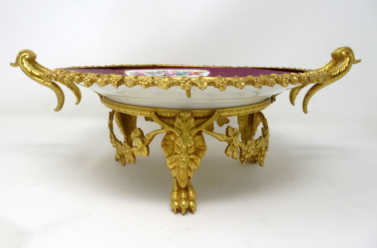 An Exceptionally Well Cast French Mounted Ormolu and Hand Painted Porcelain Sevres Circular Tazza of Traditional Form, possible from the third quarter of the Nineteenth Century.