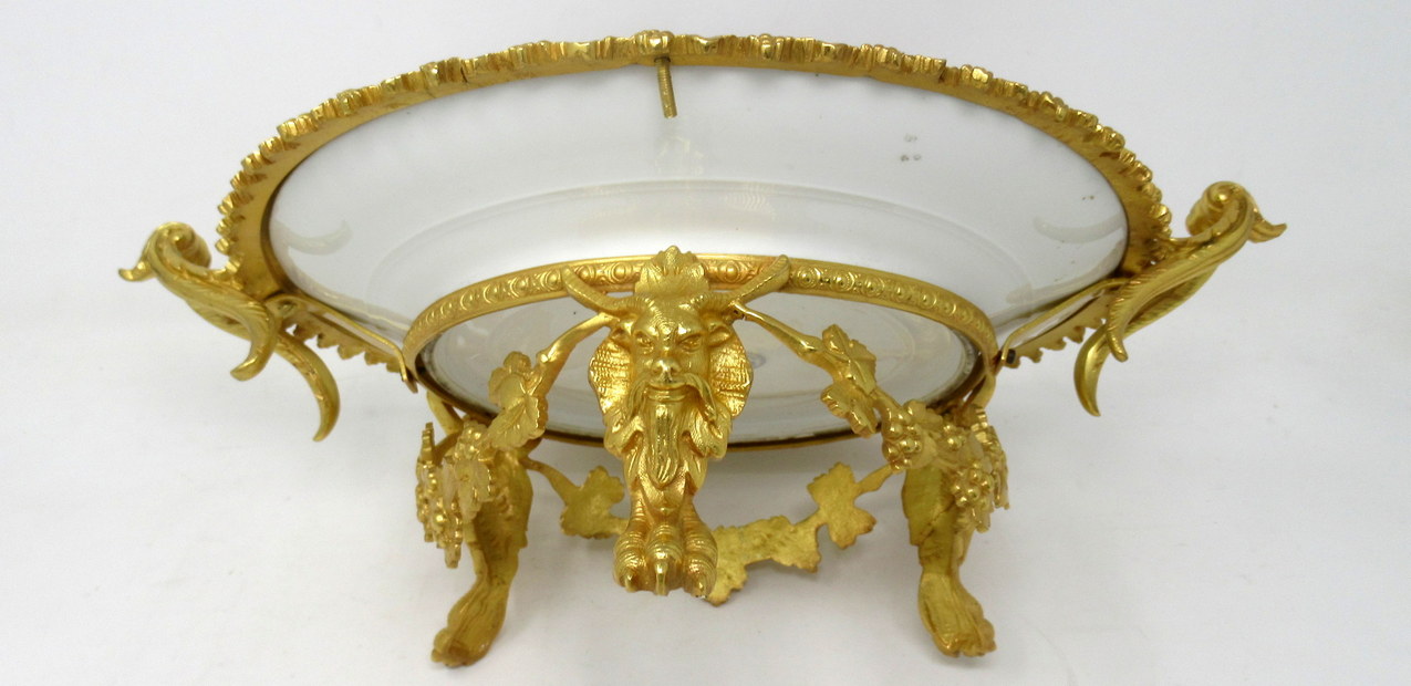 The Gilt Bronze grapevine wreathed frame with twin scrolling handles raised on three unusual Ram heads above claw supports.