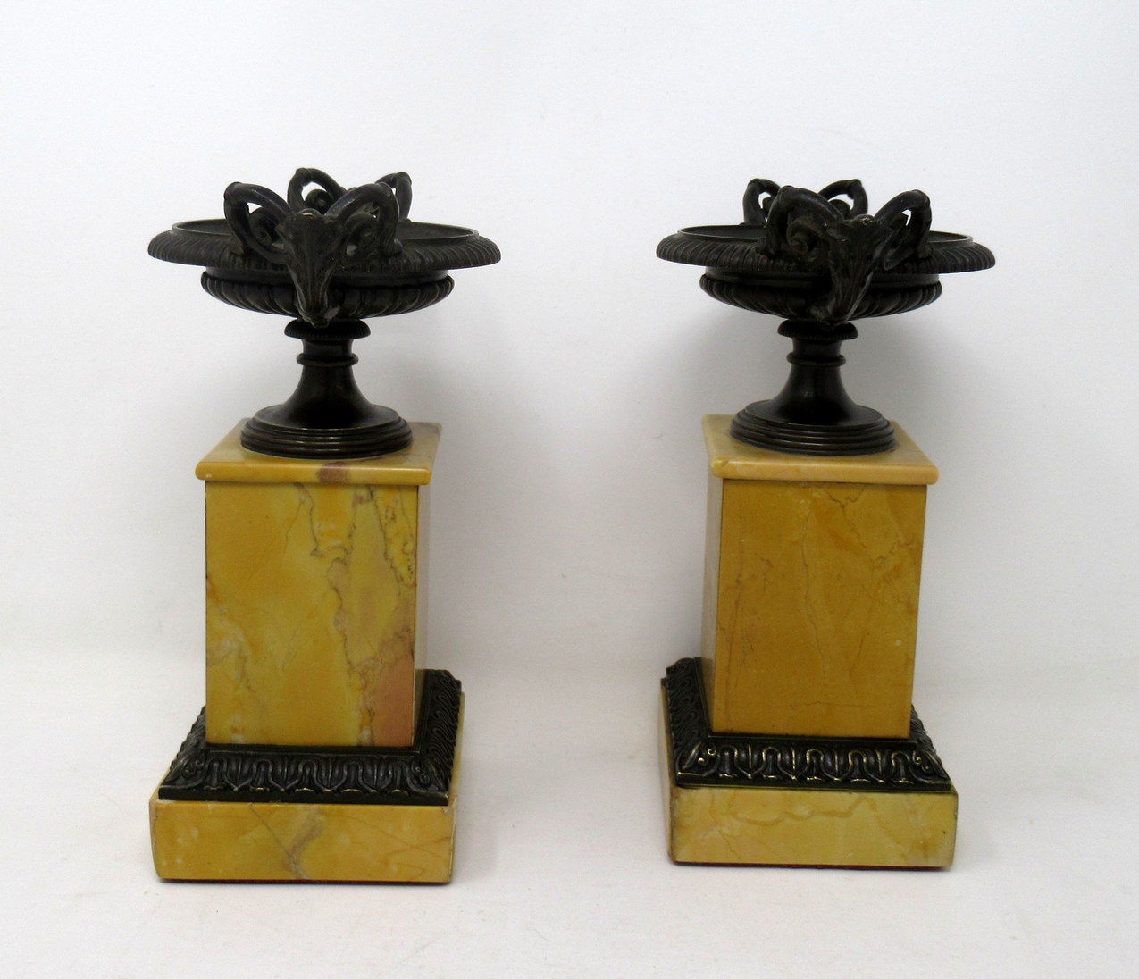 389. Pair French Grand Tour Ormolu Bronze Dore Sienna Marble Tazza Urns Vases 19thCt