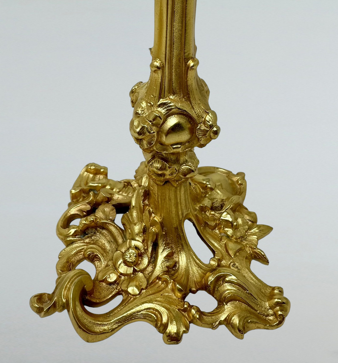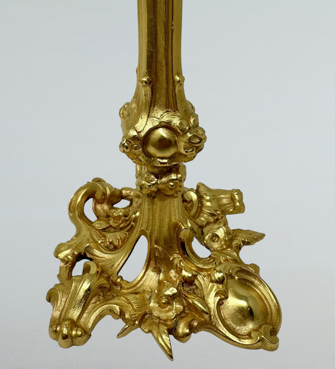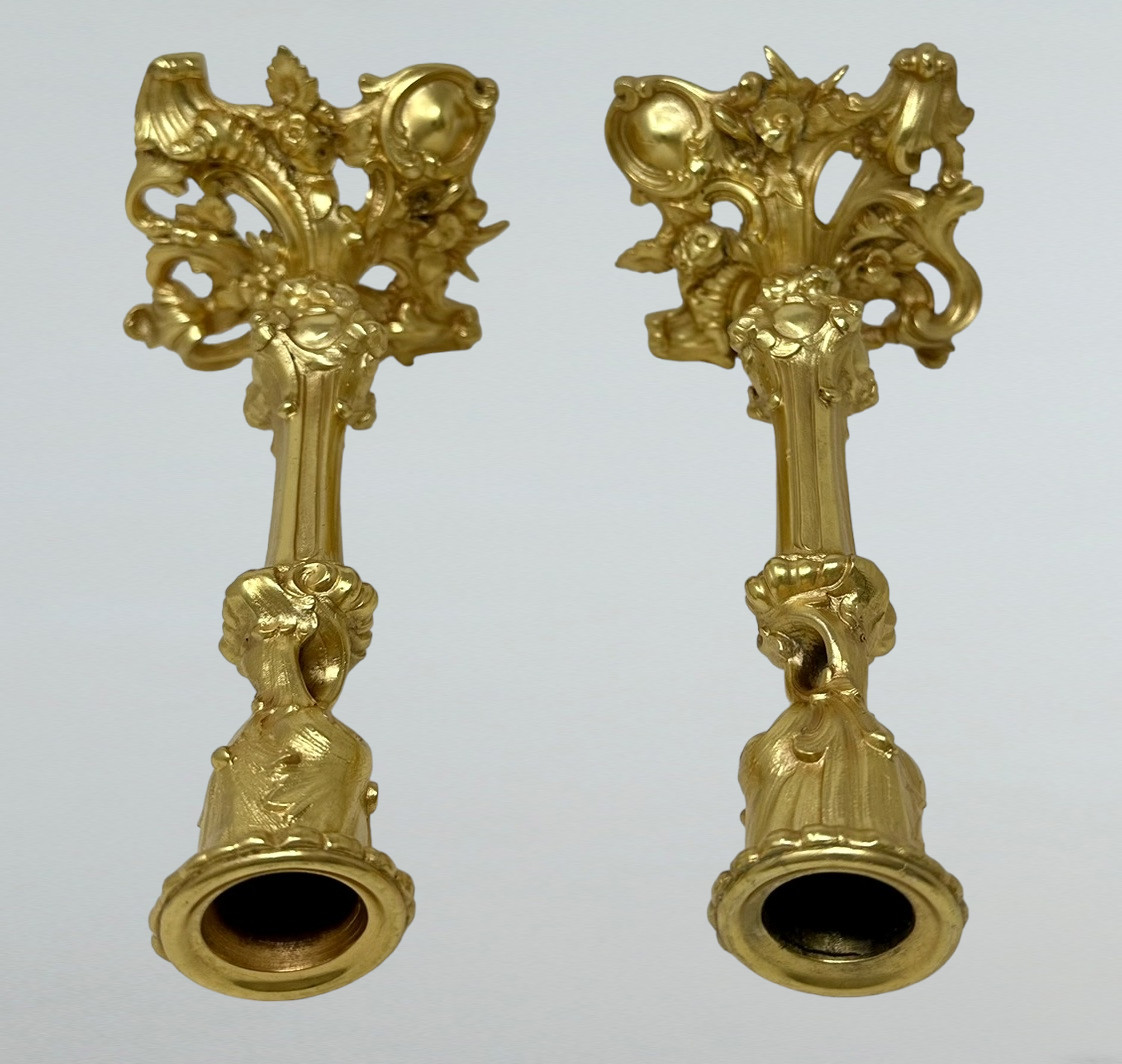 423. Antique Pair French Ormolu Bronze Dore Edwardian Candlesticks Candelabra 19th Ct