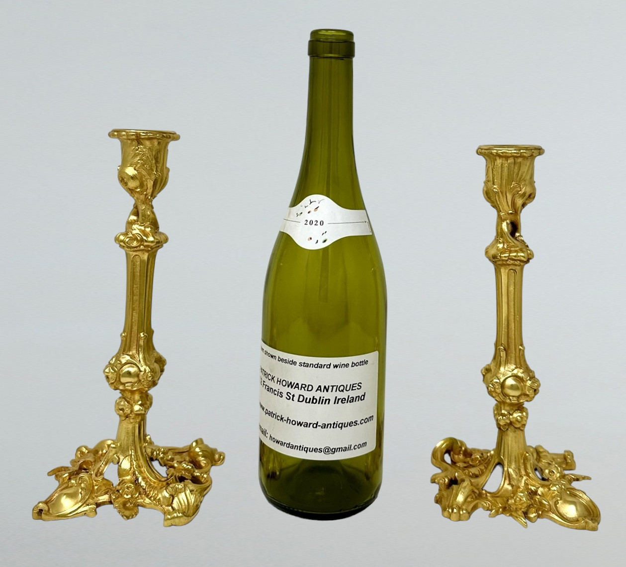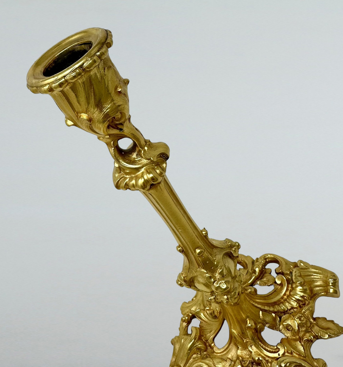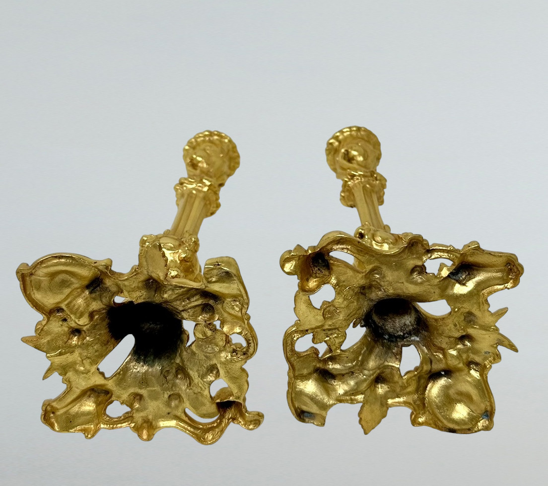 423. Antique Pair French Ormolu Bronze Dore Edwardian Candlesticks Candelabra 19th Ct