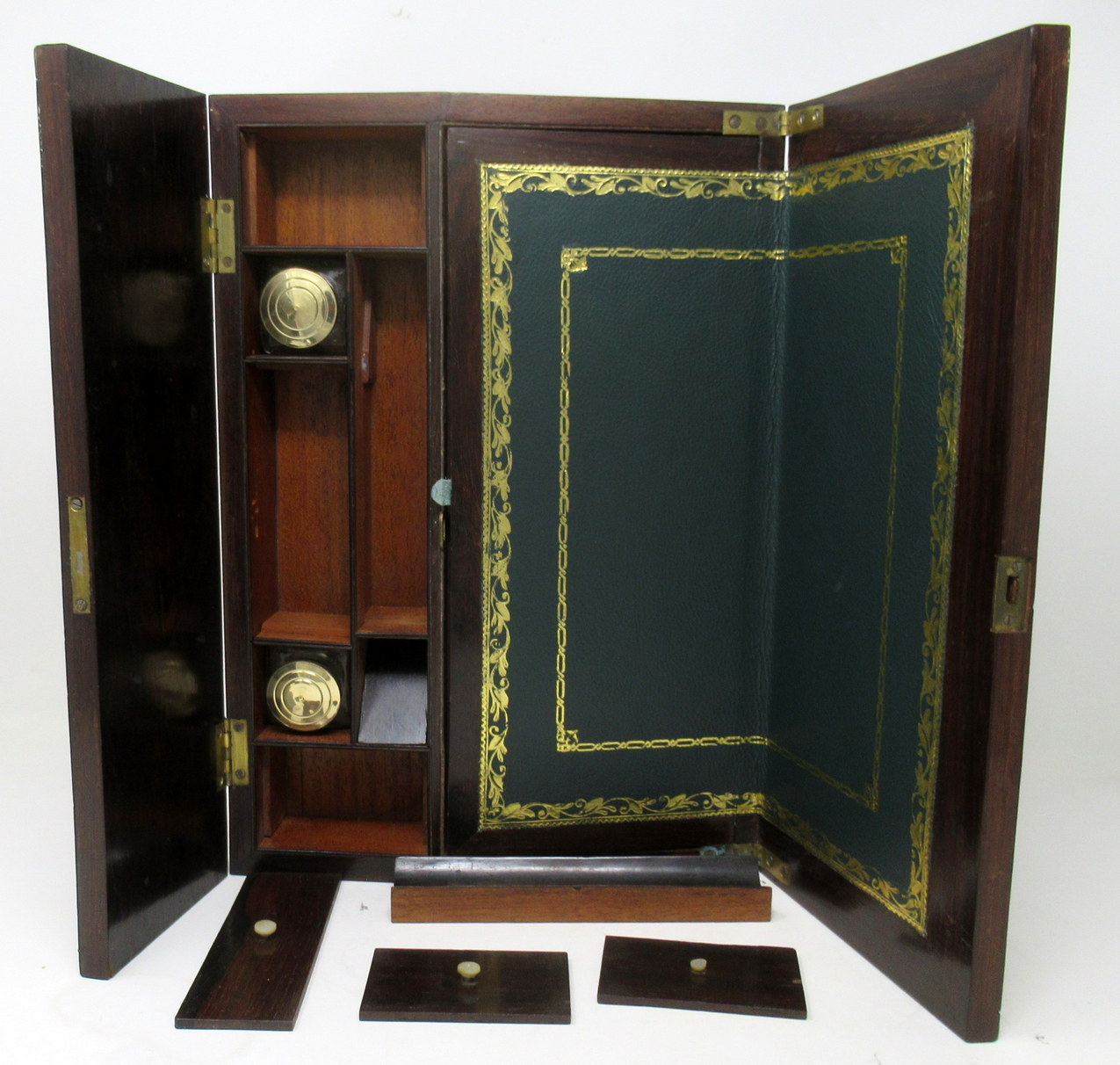 Stunning and Rare Example of an English well grained Ladys or Gentlemans Flame Mahogany with Coromandel interior Travelling Writing Slope of generous proportions. Third quarter of the Nineteenth Century, possibly earlier.