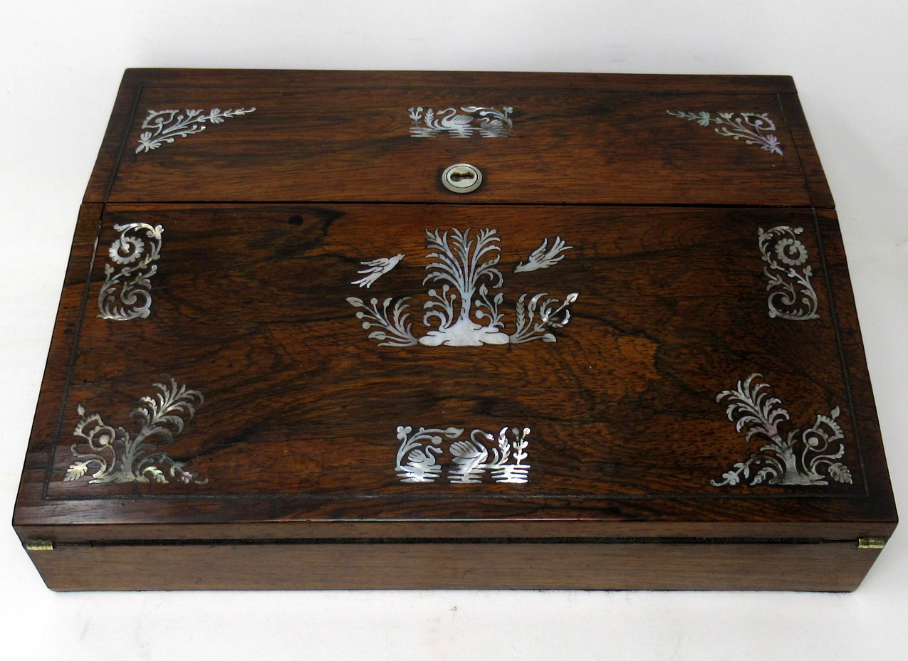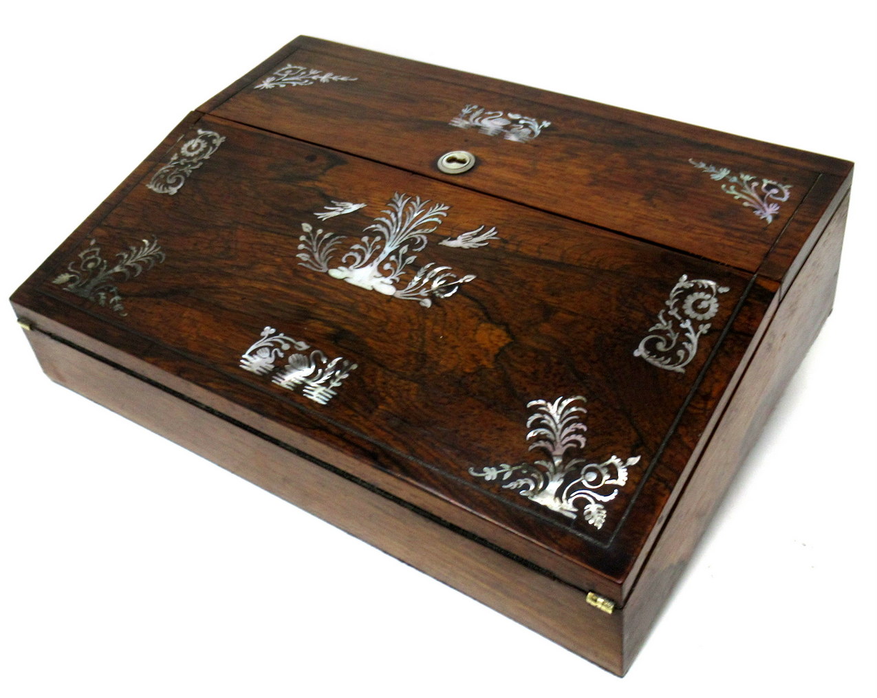 432. Antique Coromandel Mahogany Mother of Pearl Victorian English Writing Slope Box