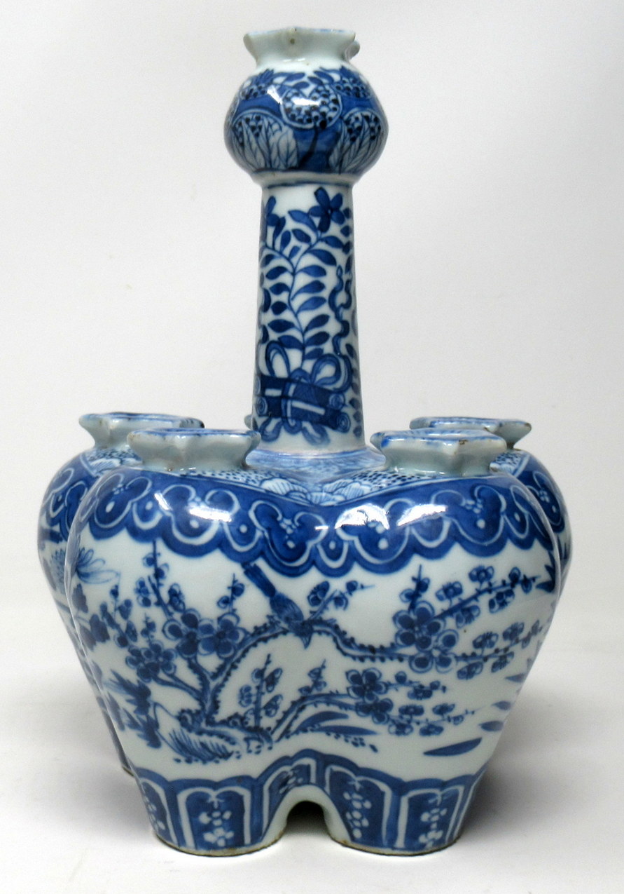An Impressive Hand Decorated Chinese Export “Tulip Flower Bulb” Vase, based on a Dutch Seventeenth Century Shape. Mid to late Nineteenth Century.