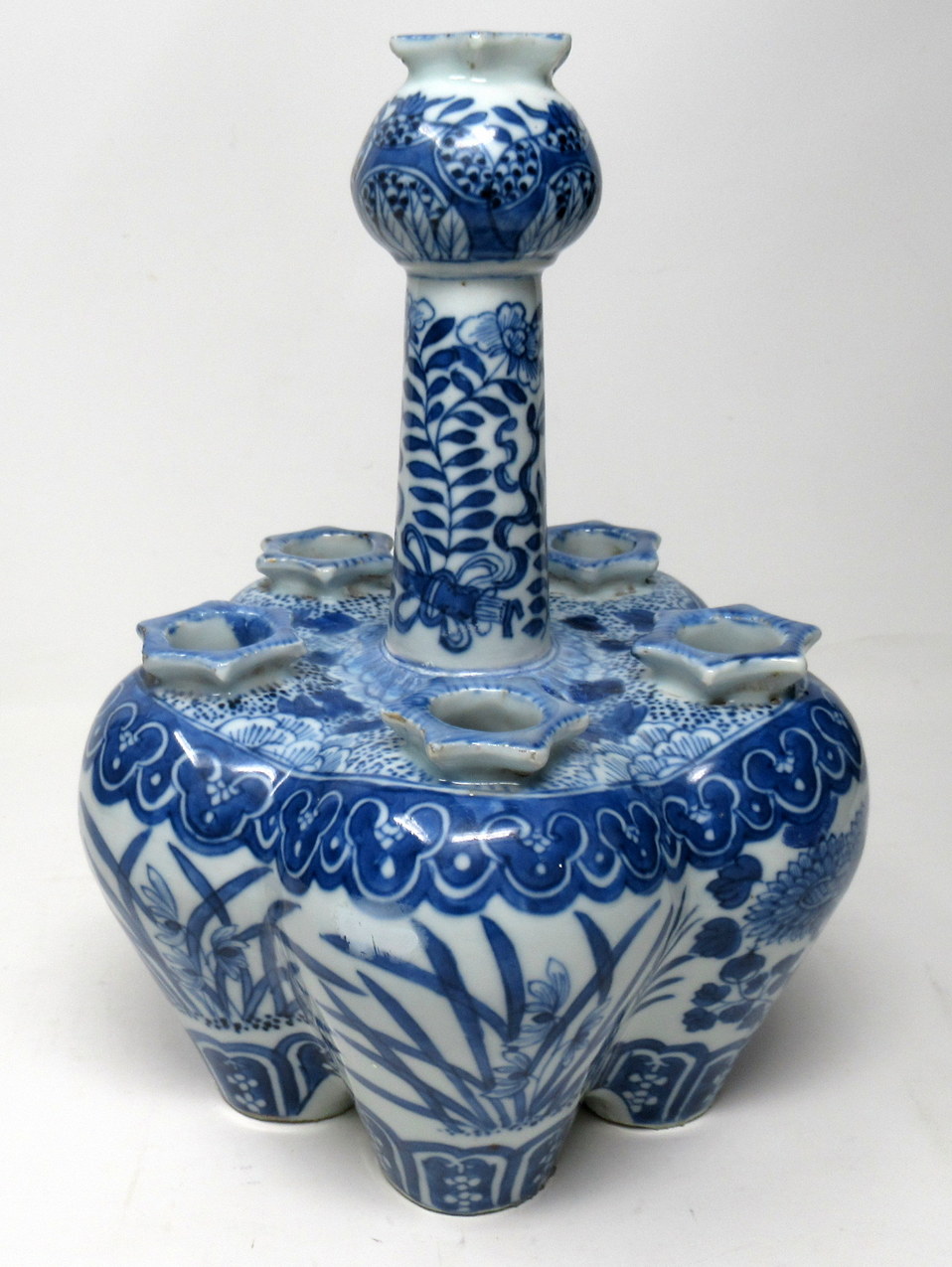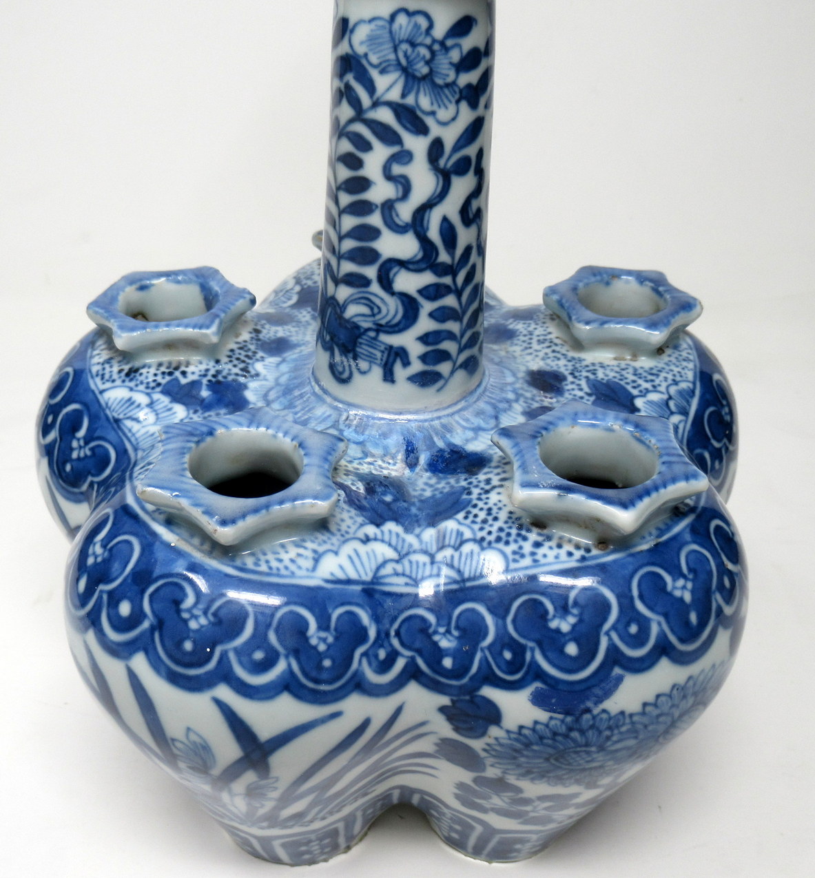 477. Chinese Blue White Export Tulip Bulb Holder Vase 19thCt
