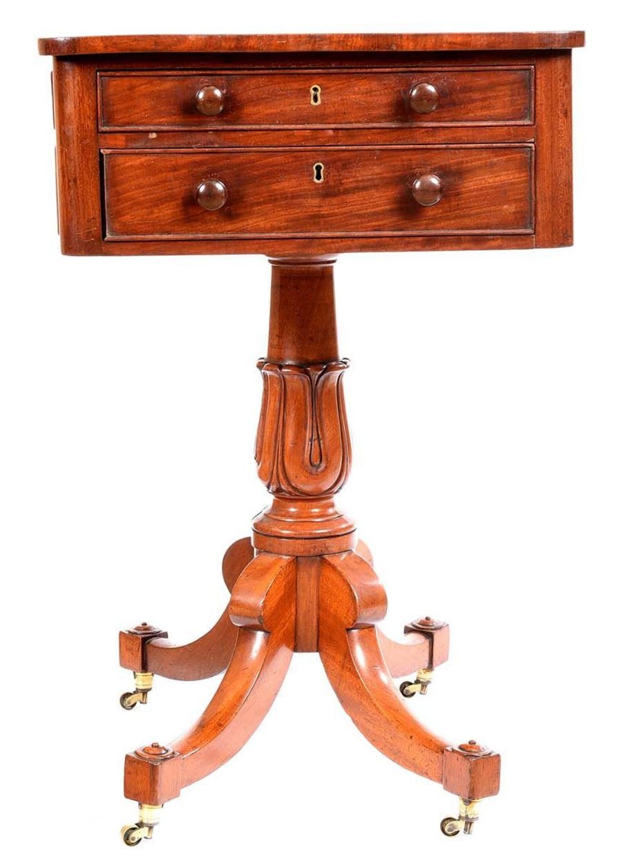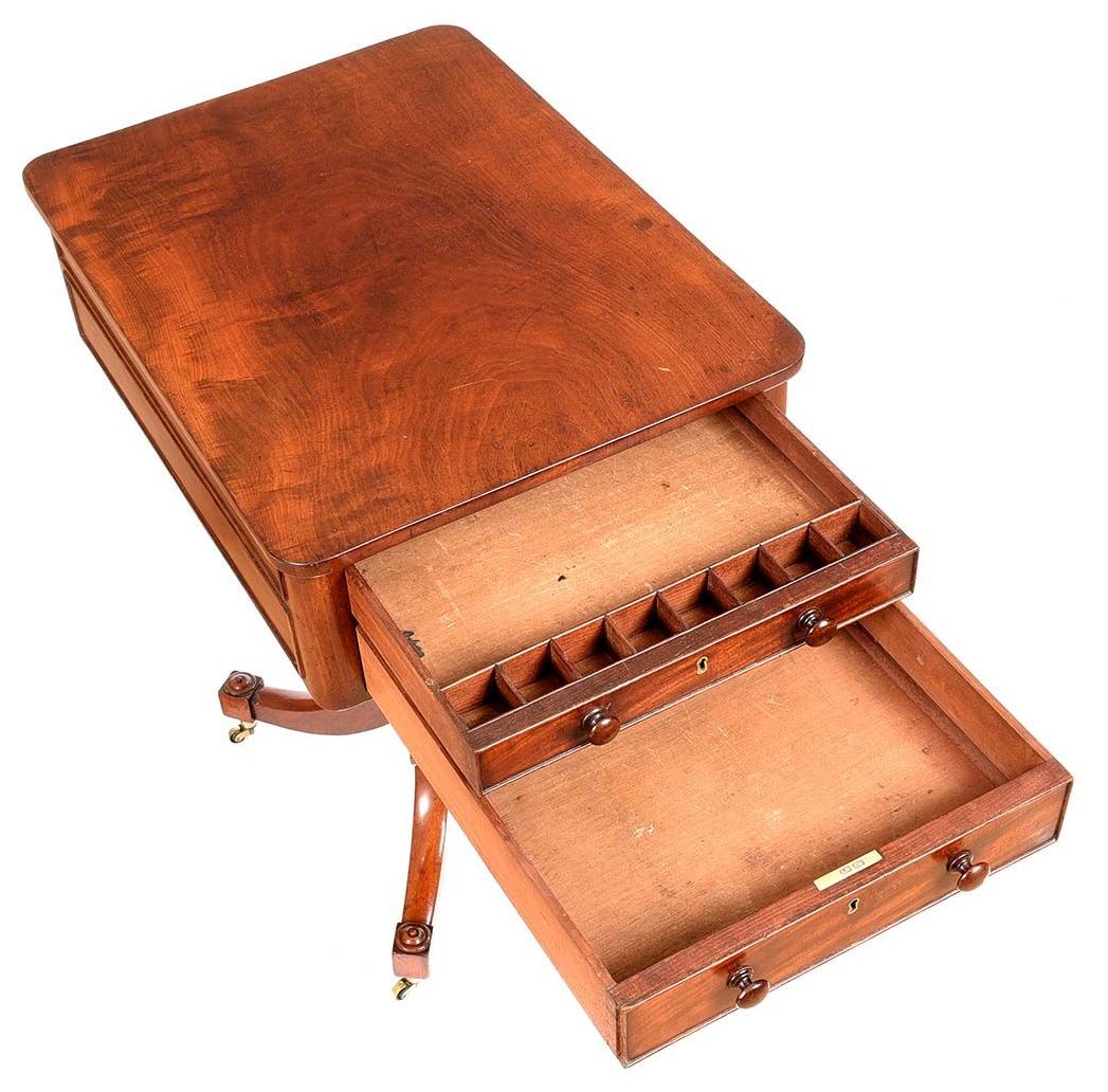 488. English Regency Flame Mahogany Work Lamp Table 19th Century
