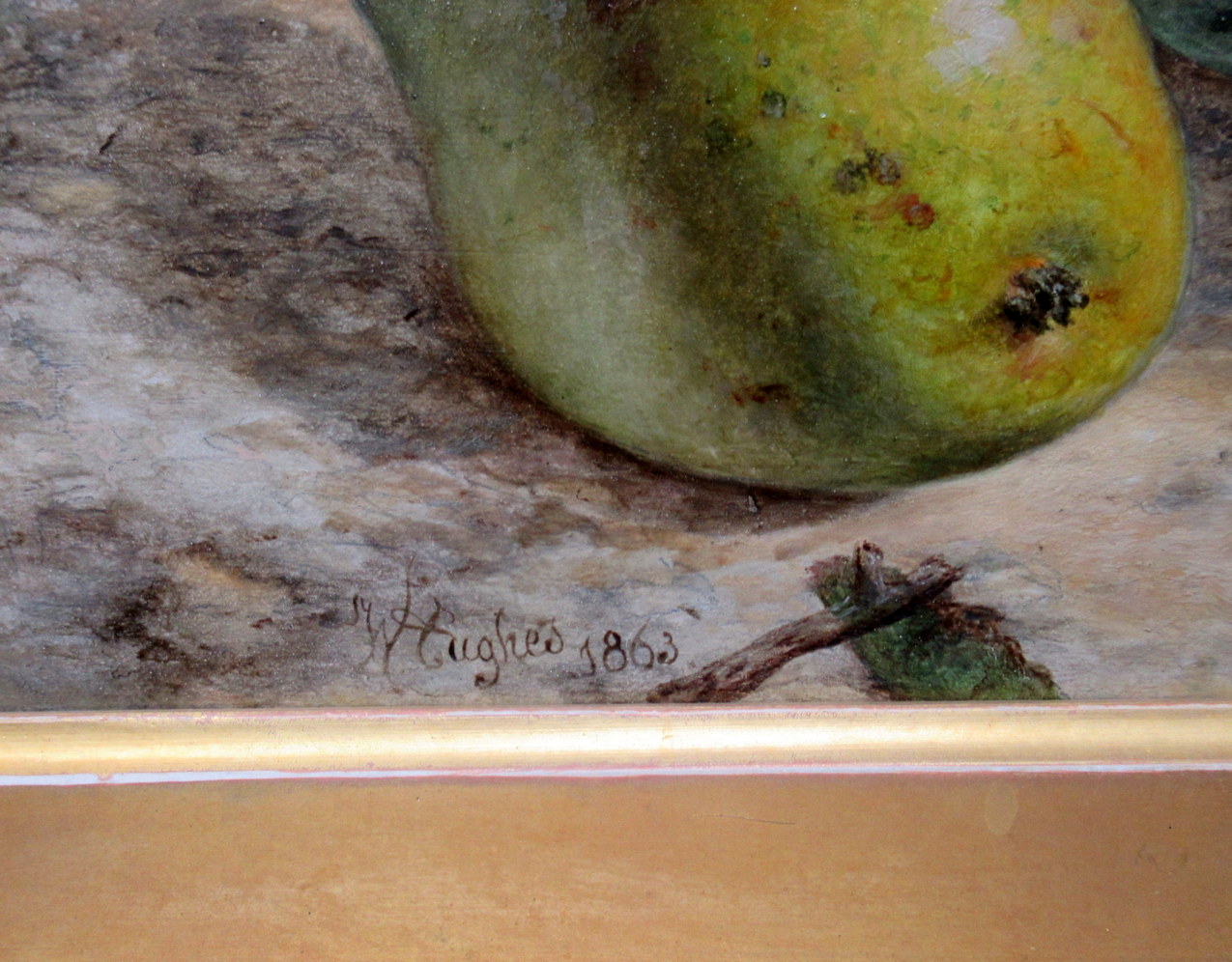 500. William Hughes Still Life Fruits Oil on Board English Painting 1863 Gilt Frame