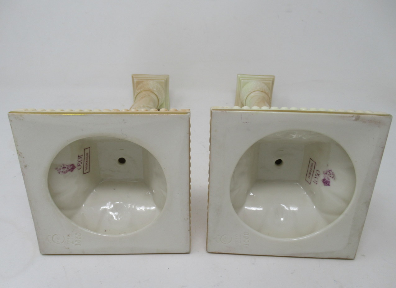 506. Antique Pair Royal Worcester Gilt Blush English Porcelain Corinthian Candlesticks