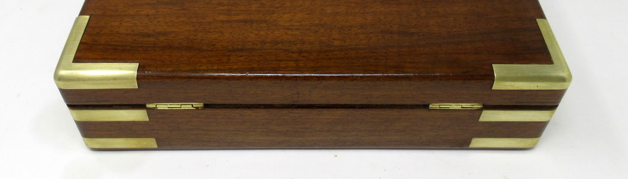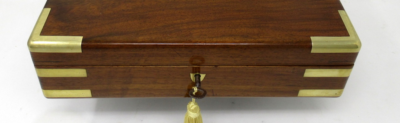 512. Antique Vintage Solid Mahogany Wooden Jewelry Box Casket Brass Bound 19th Cent