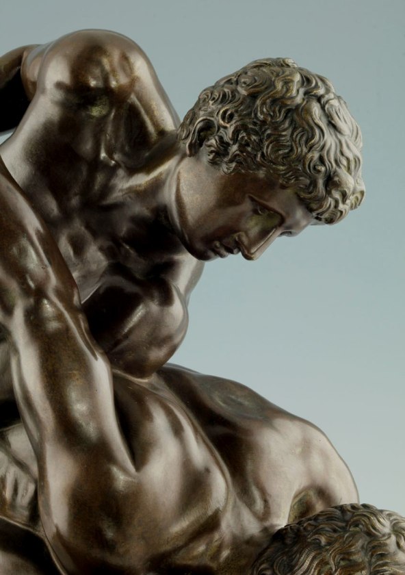 The group are considered to be finest quality Roman copies of a lost bronze. The sculpture has previously been variously attributed to Myron, Cephisodotus the Younger or Heliodorus– the last two are mentioned by Pliny as creators of a sculptural format called symplegmata, signifying sculptures of figures closed in struggle, whether purely physical or amatory. Currently the sculpture is considered to be the best quality Roman copy from a lost original Hellenistic bronze of the third century BCE, either of the Pergamene School or the circle of Lysippus.