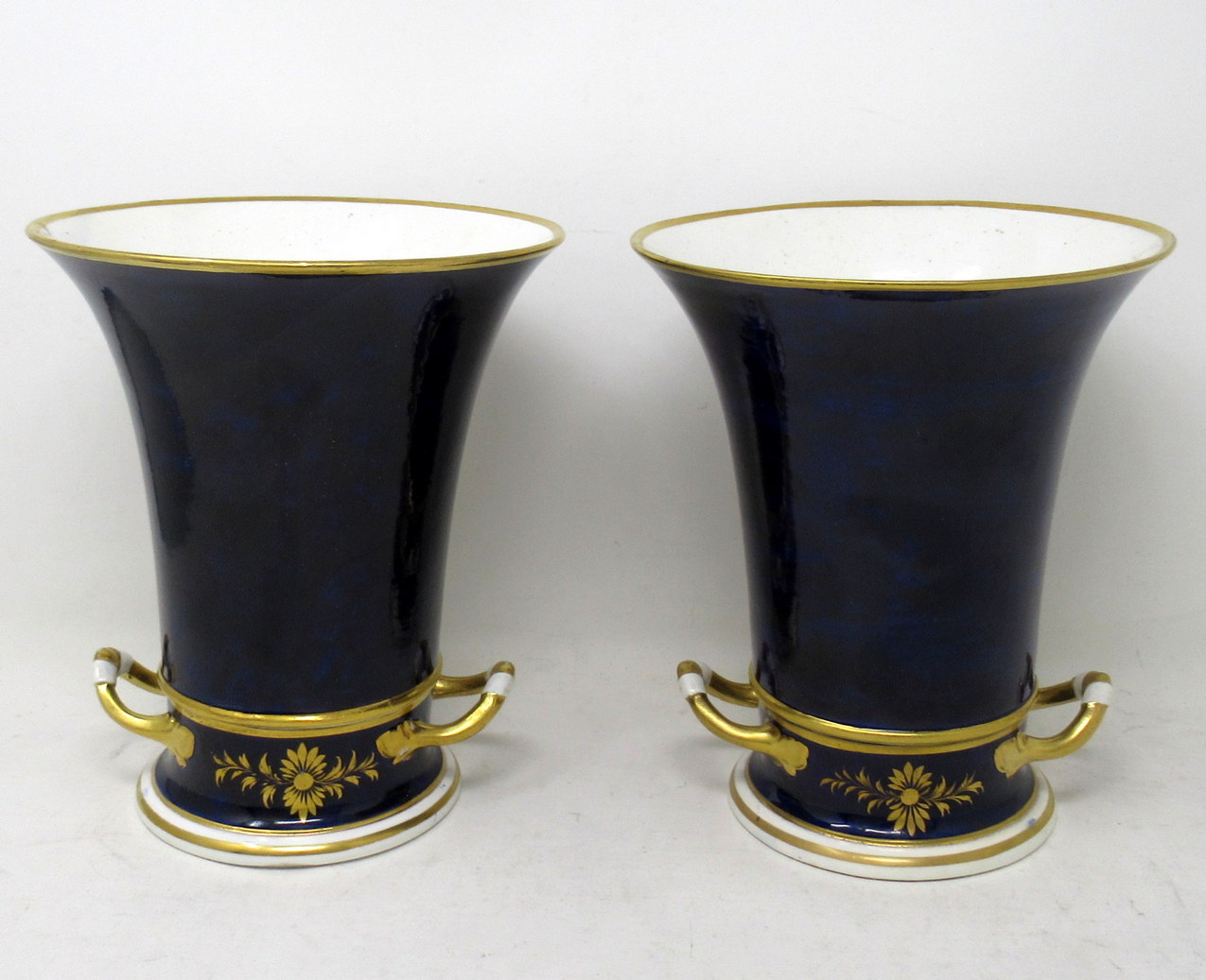 515. Pair Regency Royal Crown Derby Campana Porcelain Urns Vases Robert Brewer 19 Ct