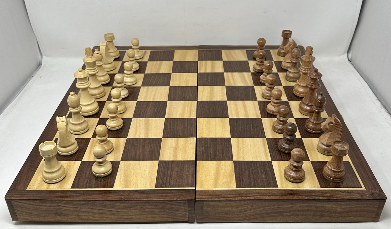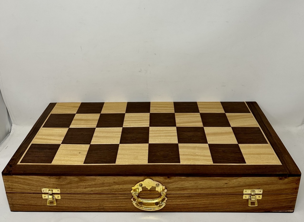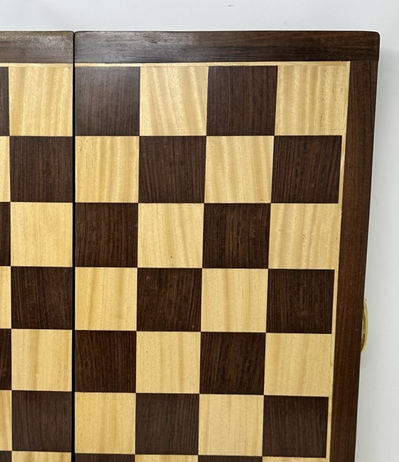 551. Fine Vintage Large French Polished Santos Mahogany Satinwood Folding Chess Set