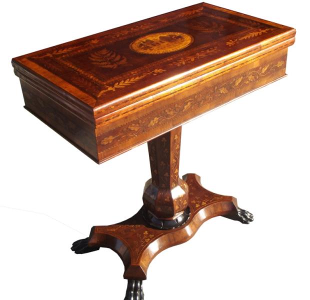 559. Rare Irish Mid-Victorian Marquetry Arbutus-Wood Games Table