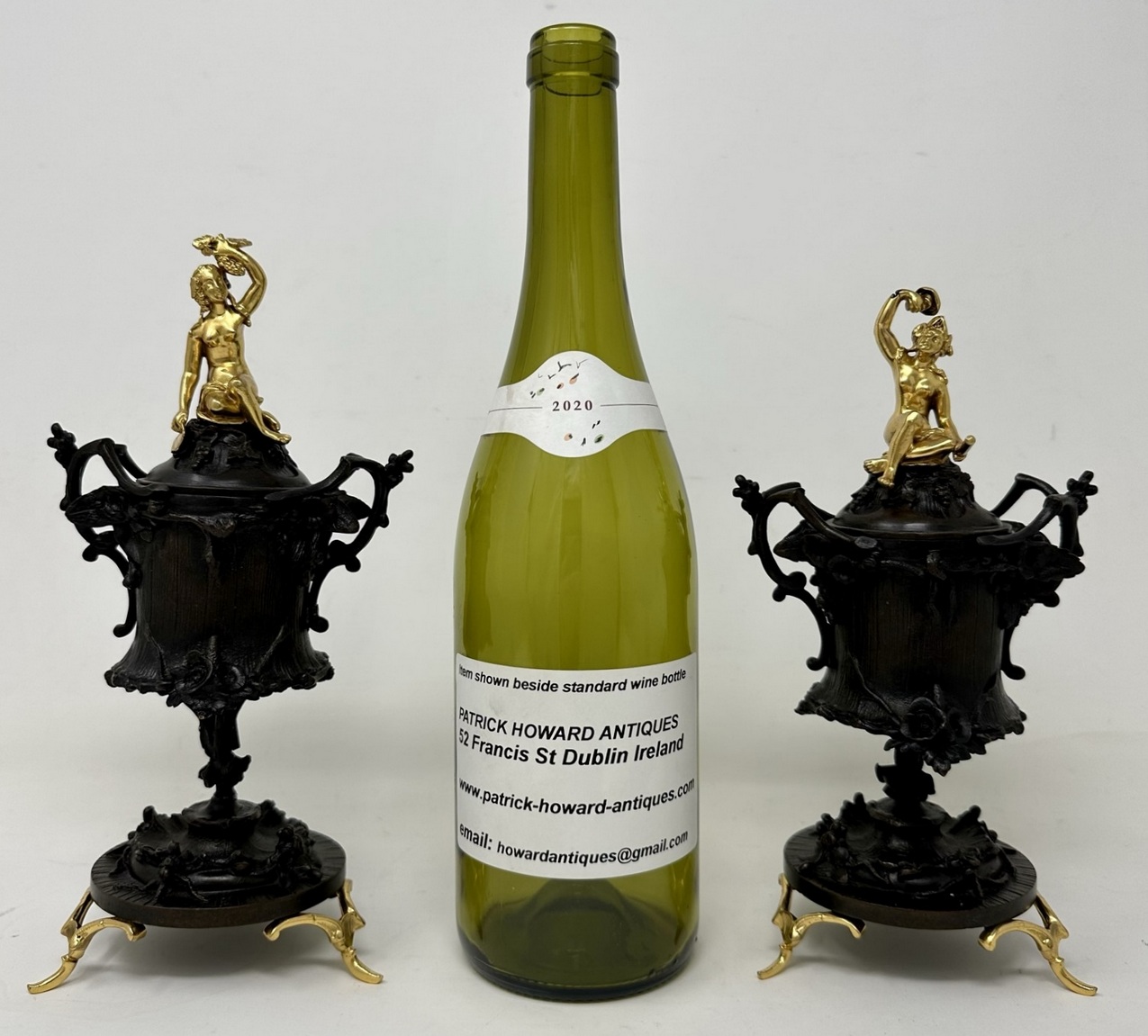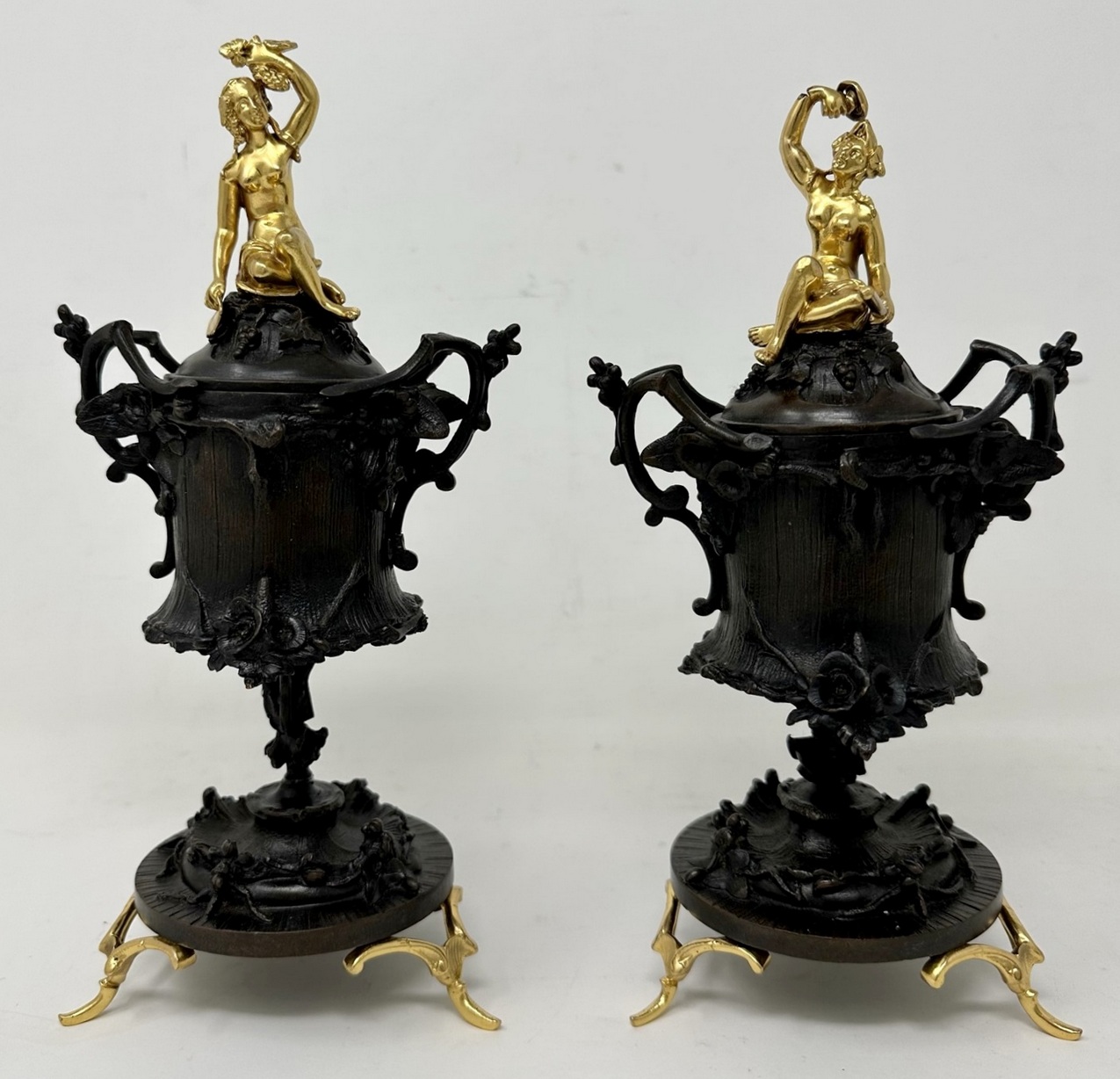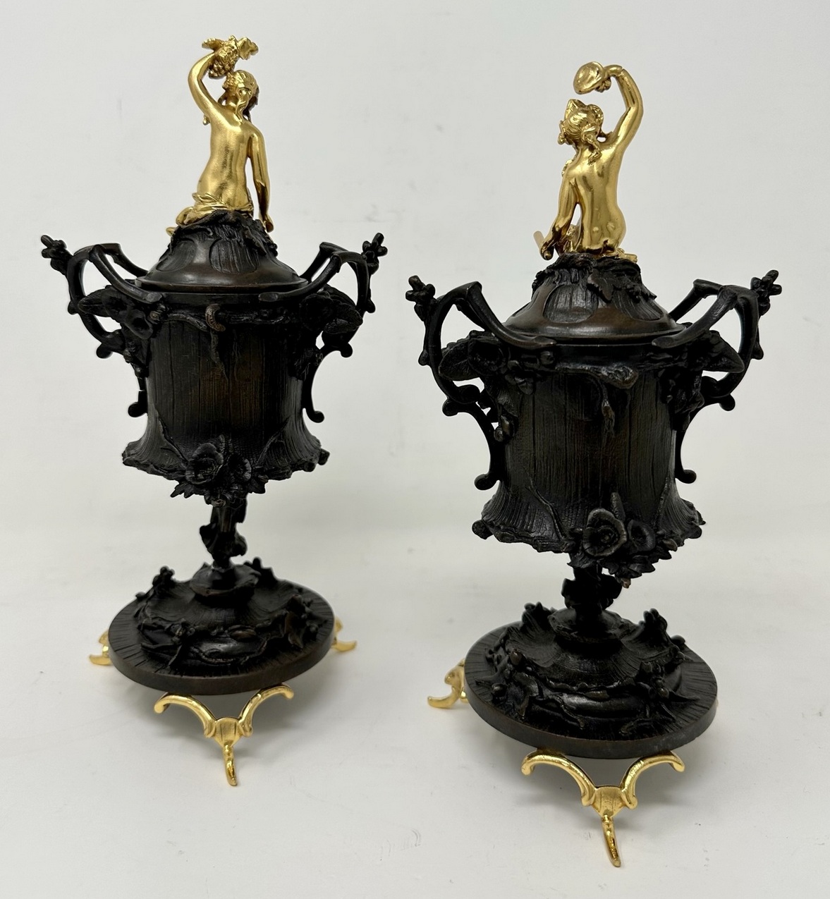 Condition: Superb condition with no losses or dents. Re-gilt and re-bronze patinated. No visible foundry marks, one is slightly taller, see images.