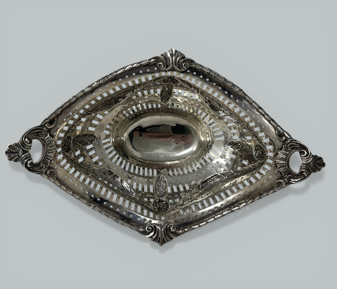 585. Antique Sterling Silver Fruit Sweetmeat Dish Centerpiece English 1898 12.9 ozs