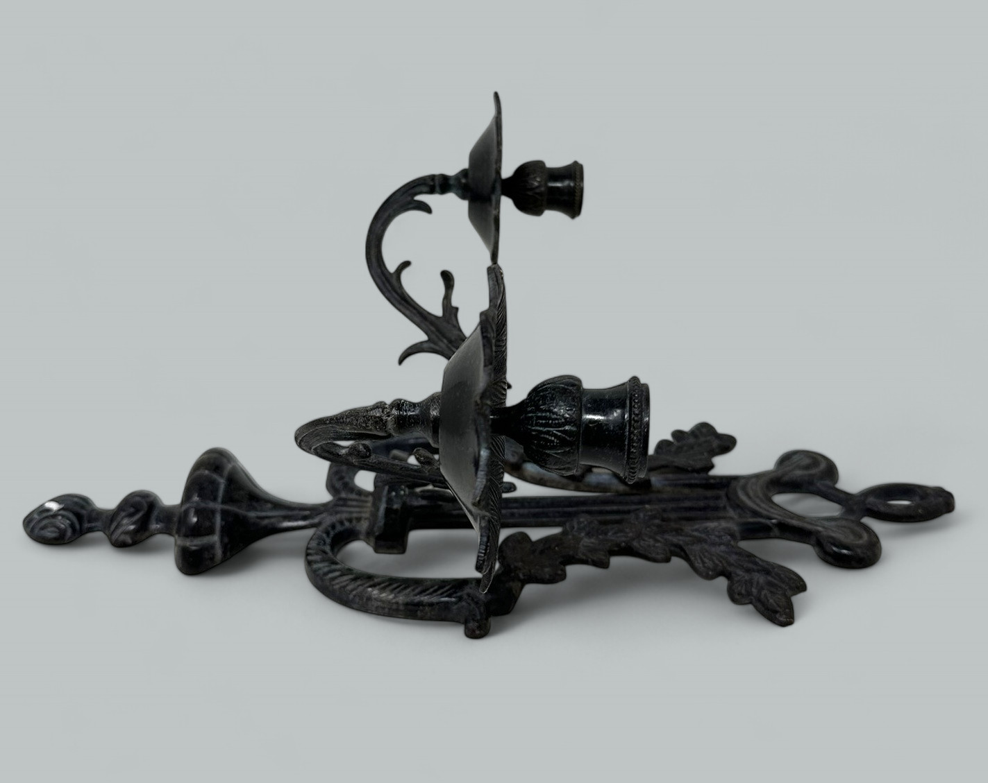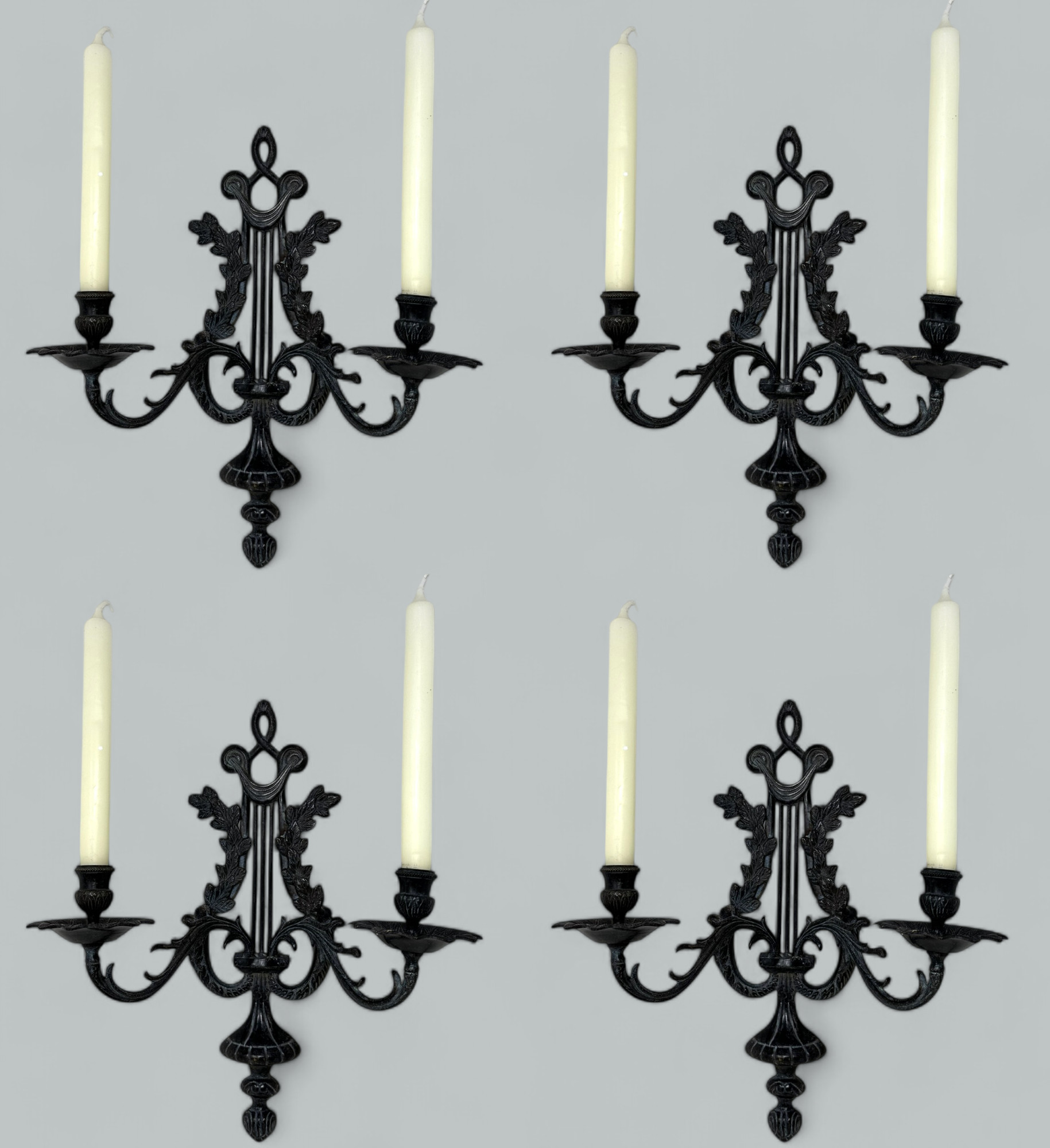 602. Antique Set Six Patinated Bronze French Twin Light Wall Candle Sconces Appliques