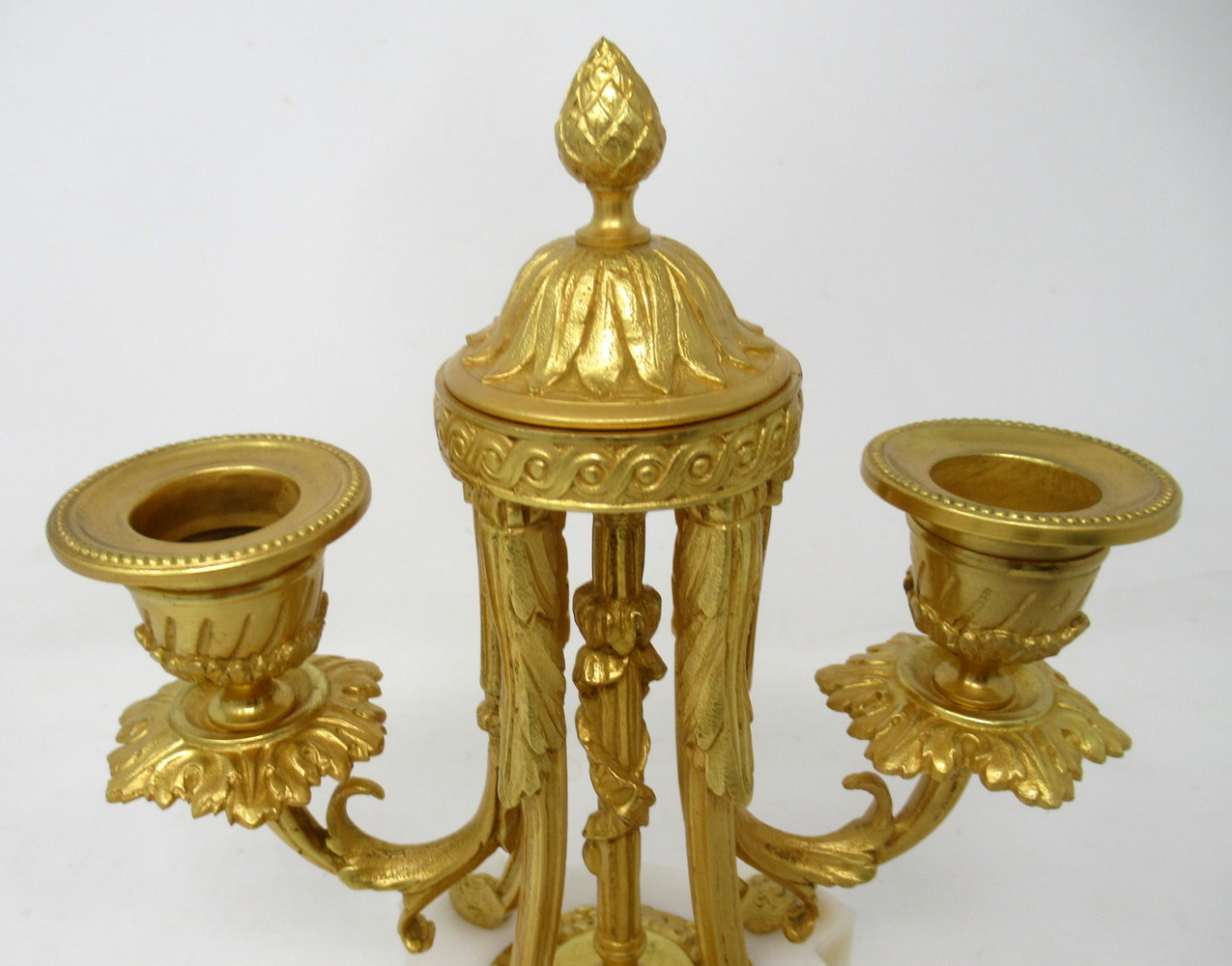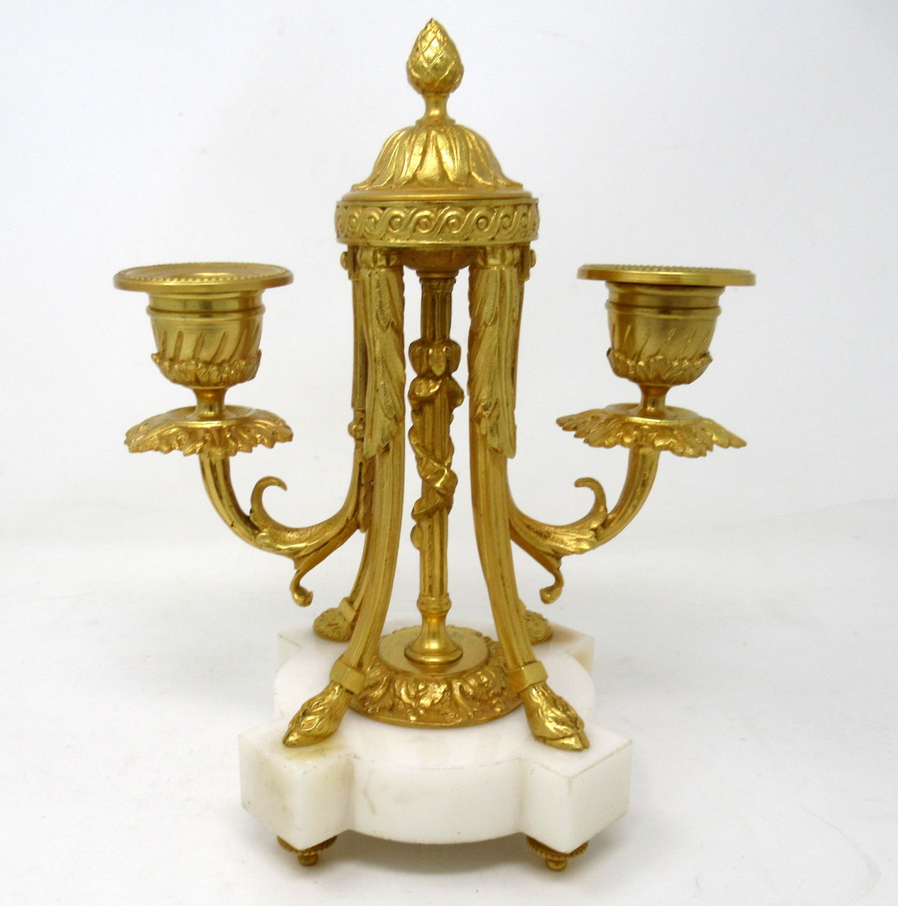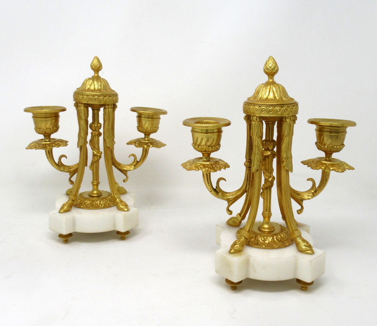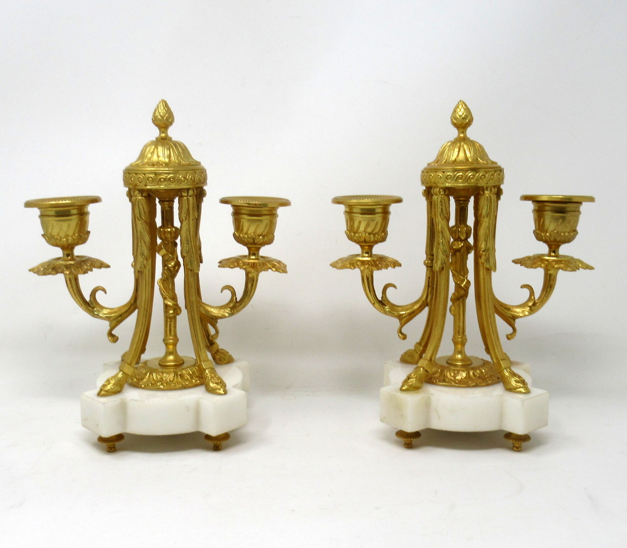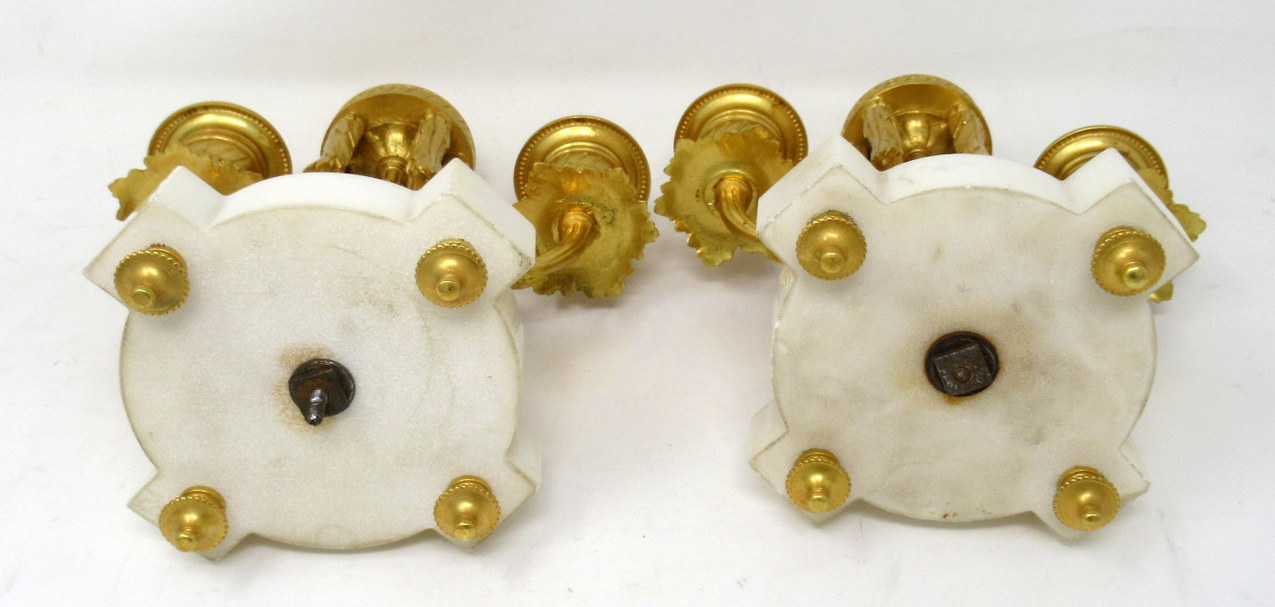 609. Pair French Ormolu White Marble Twin Arm Garniture Candelabra Candlesticks 19th Century