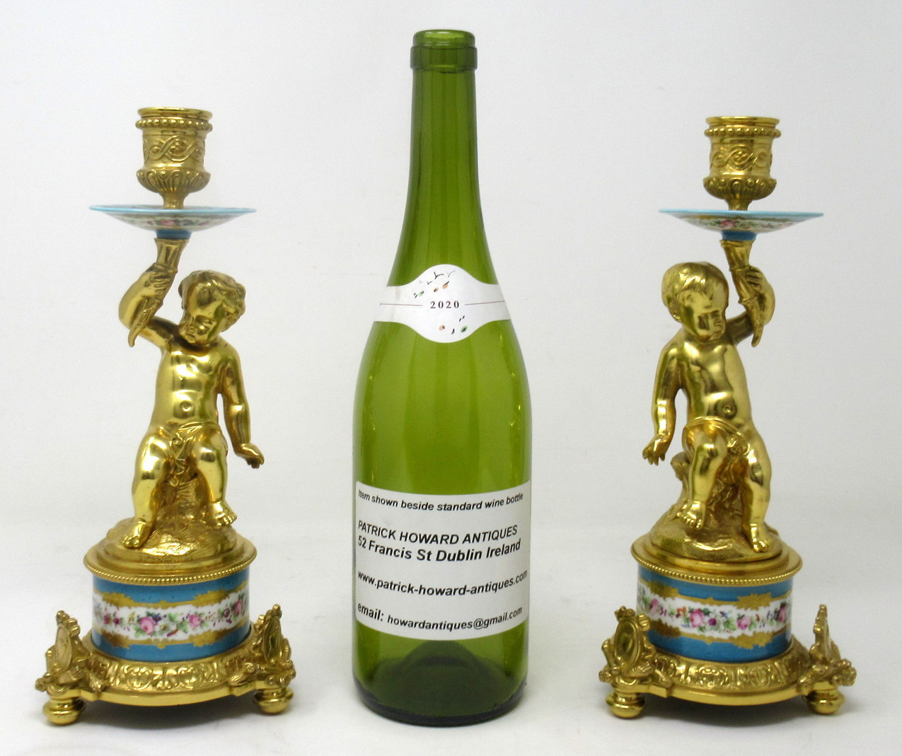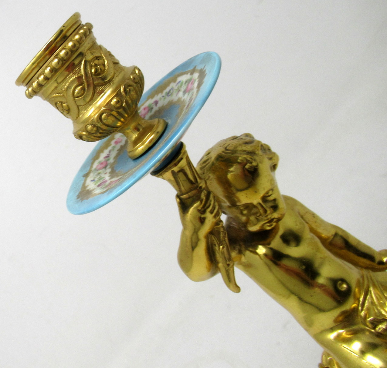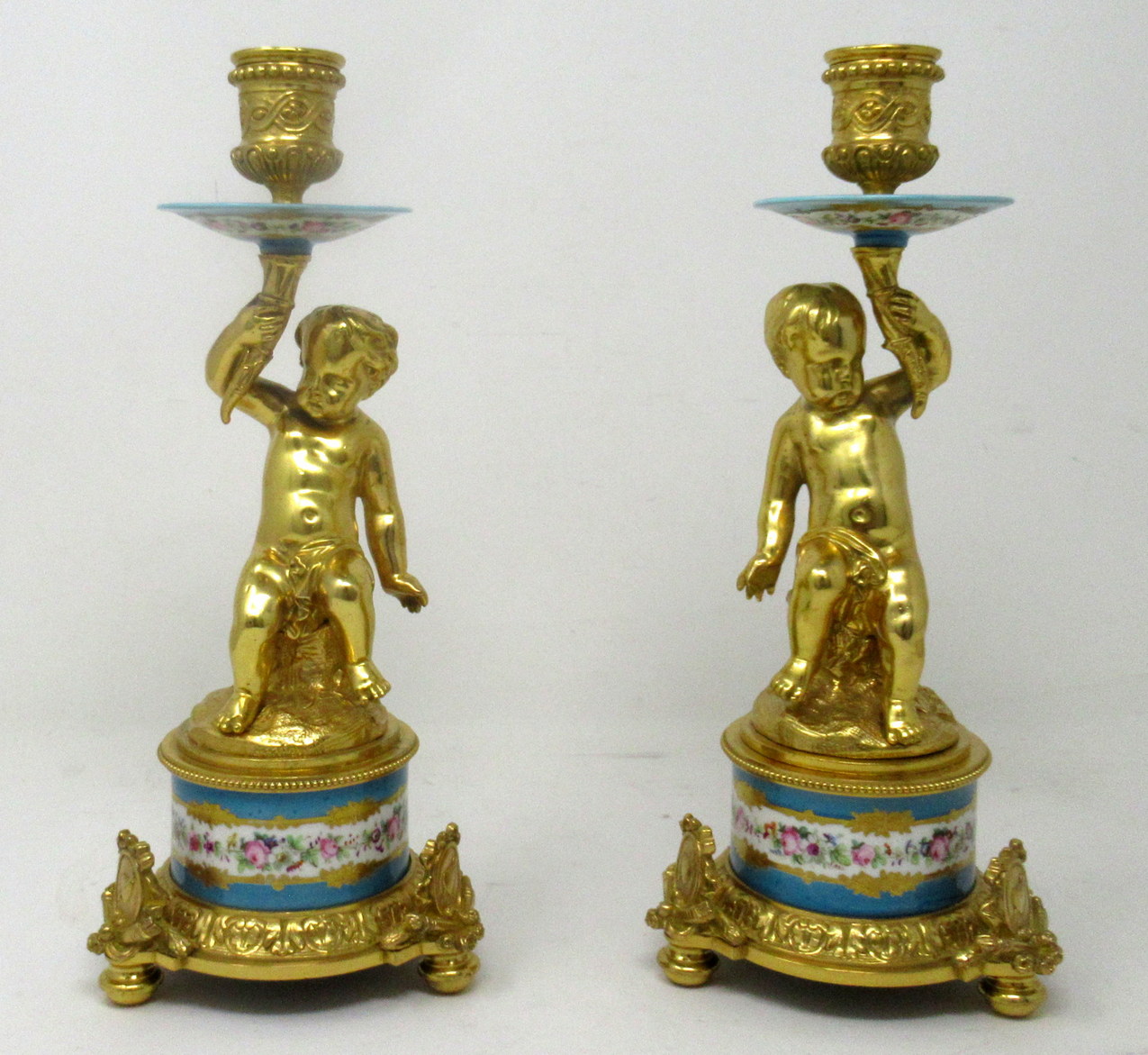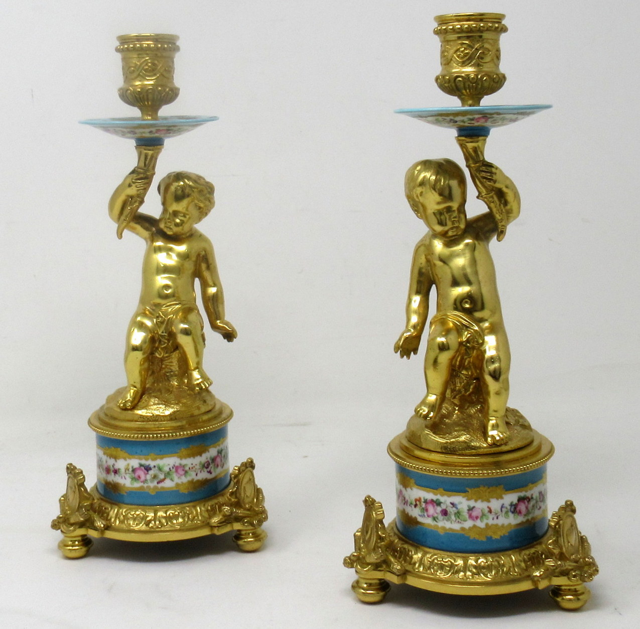 614. Antique Pair Ormolu Sèvres Porcelain Gilt Bronze Celeste Candlesticks Candelabra