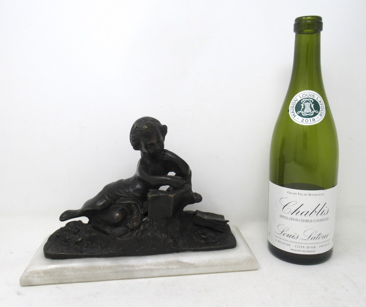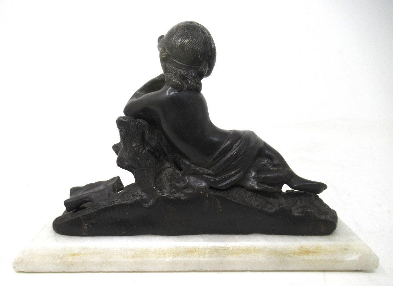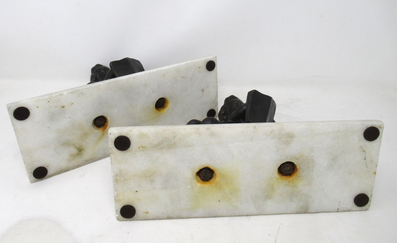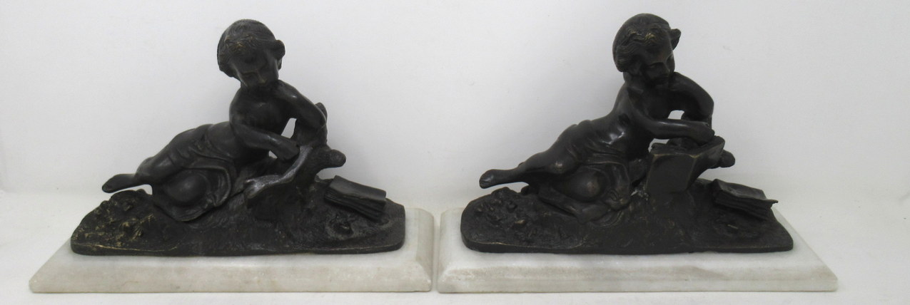 622. Antique Pair French Grand Tour Bronze Marble Cherubs Figures Putti Bookends