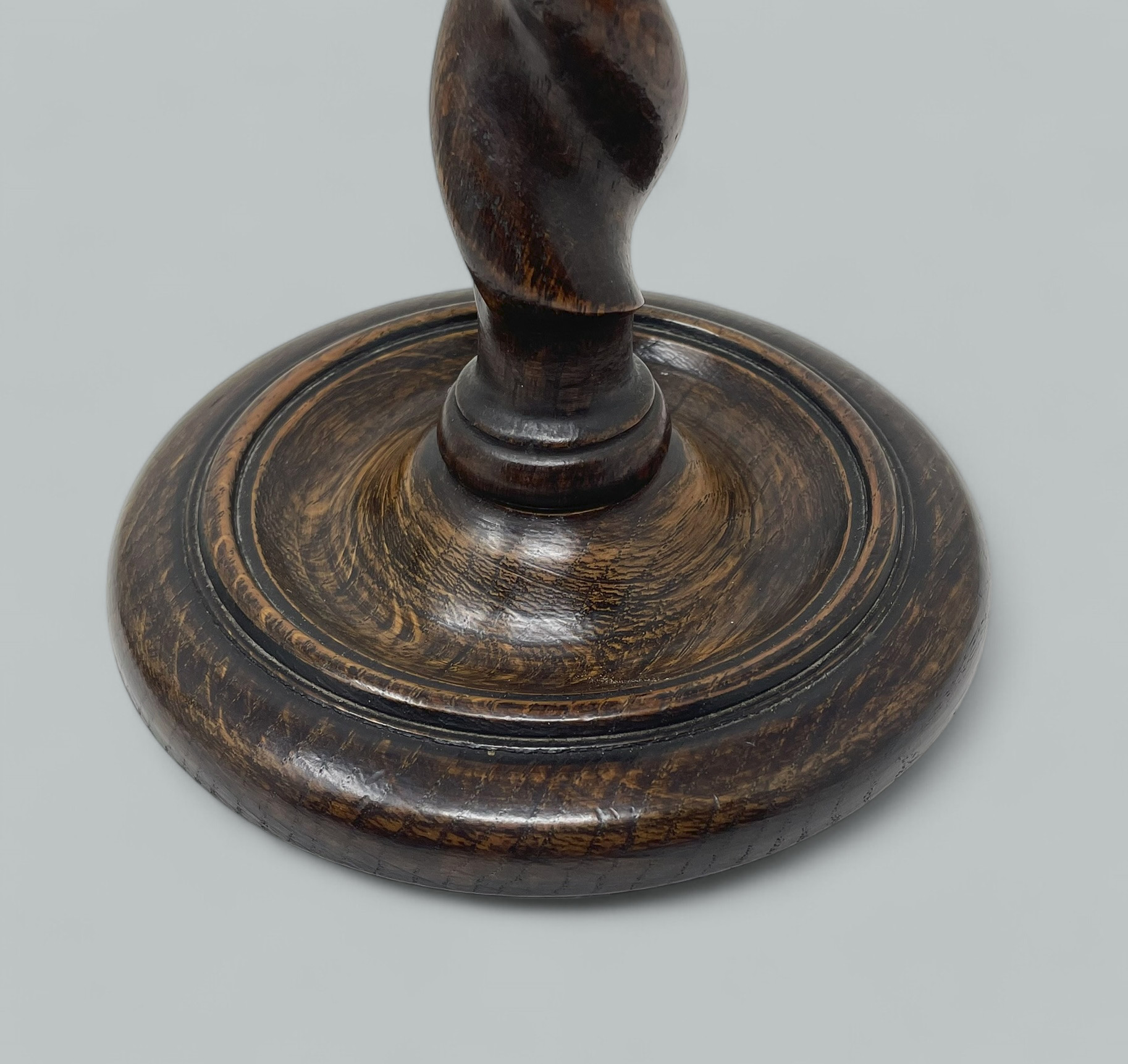 629. Antique Pair English Victorian Wooden Barley Twist Candlesticks Candelabra 19 Ct