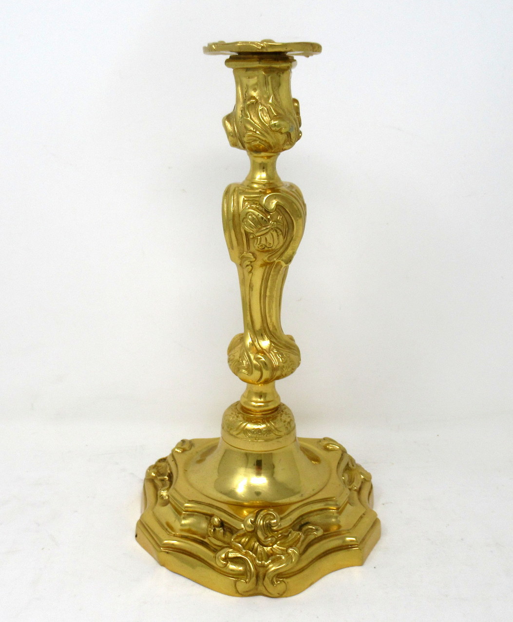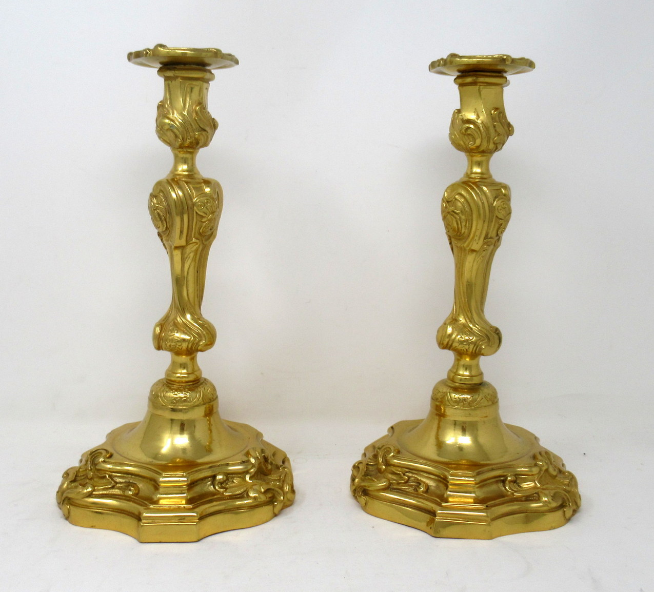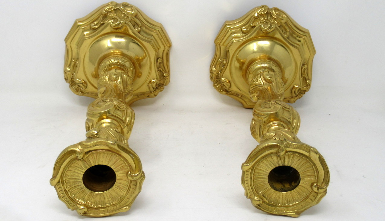 An Exceptionally Fine Quality Pair of LARGE Heavy Gauge French Ormolu Rococo Style Table or Desk Single Light Candlesticks in the manner of Juste Aurele Meissonier.