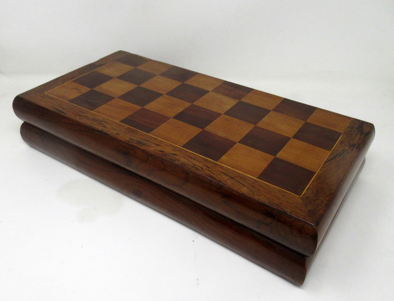 651. Irish Killarney Kerry Arbutus Wood Antique Chess Backgammon Games Board 19thCent